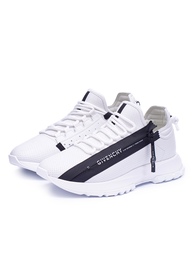 - Шкіряні кросівки виготовлені з гумовою рифленою підошвою, з одного боку вони мають спортивну блискавку. Застібка на шнурівці спереду, бічна застібка-блискавка, друк логотипу збоку.