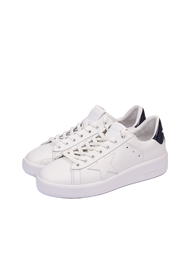 - Кросівки із білої шкіри на шнурівці, фірмові зірки з боків, круглий носок, гумовий ярлик із тисненим логотипом на язику, гумова підошва.