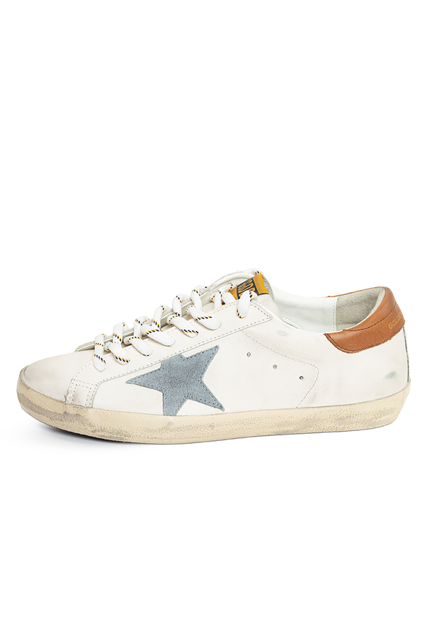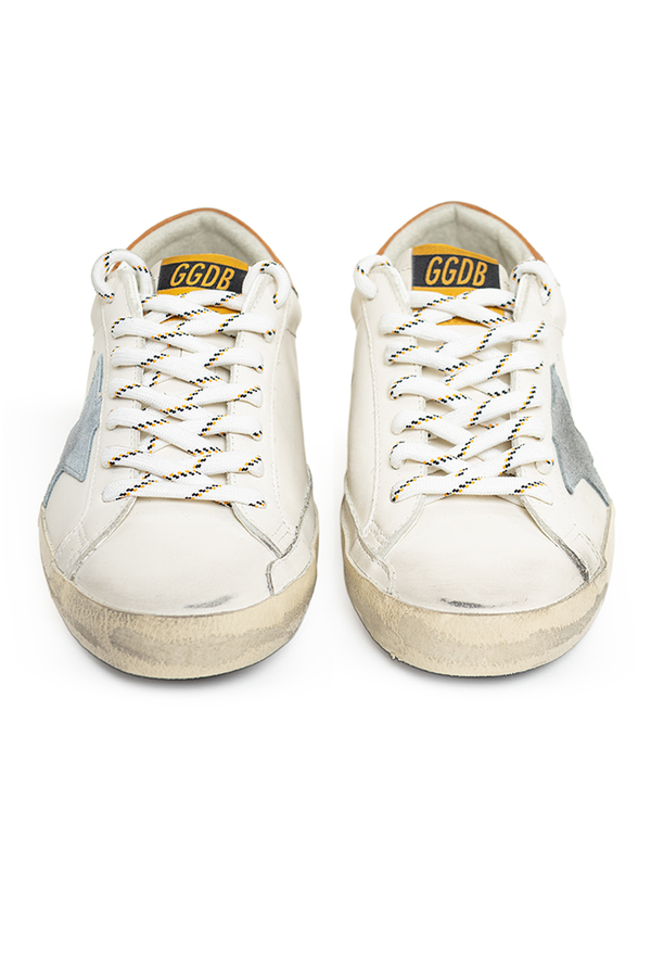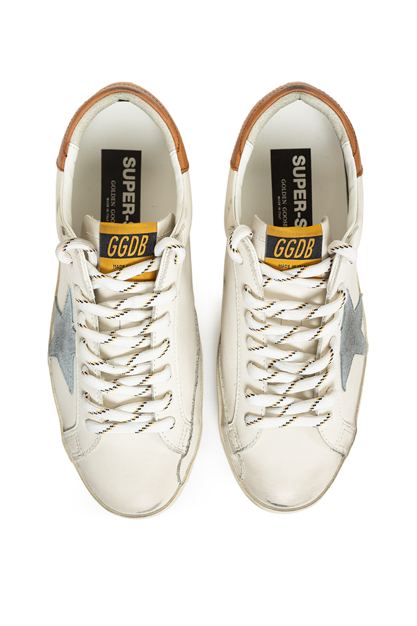 - Шкіряні кросівки з ефектом потертості, круглий носок, спереду шнурівка, принт логотипу на п’яті, етикетка з логотипом на язичку, фірмова зірка збоку