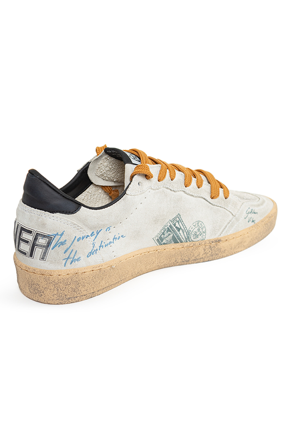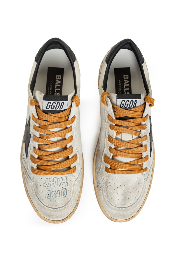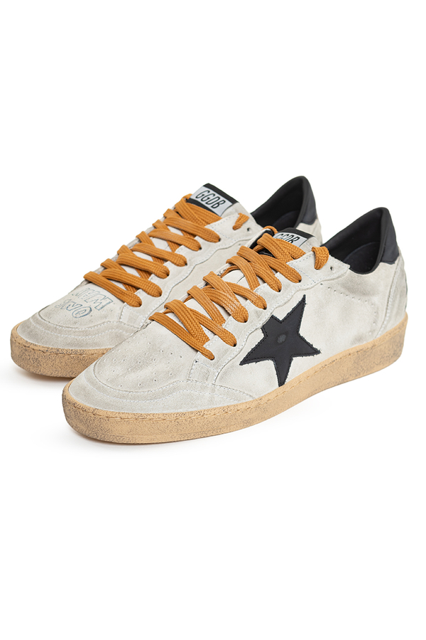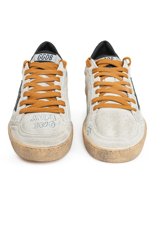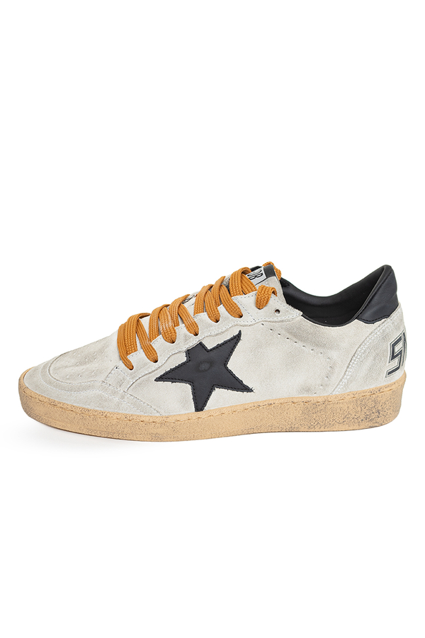 - Кросівки з круглим перфорованим носком, ефект потертості, контрастна шнурівка, вінтажне оздоблення, нашивка у вигляді зірки збоку, язичок з нашивкою логотипу, гумова підошва