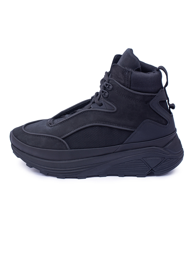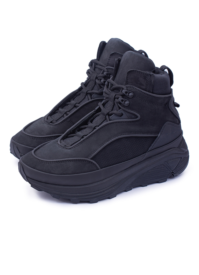 - Високі кросівки з нубуку. Застібка на шнурівці, гумова підошва.