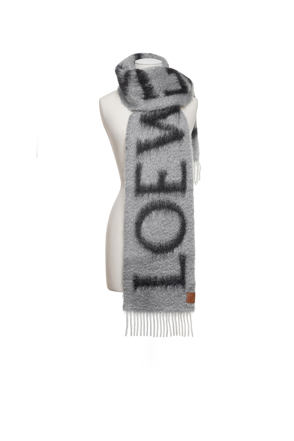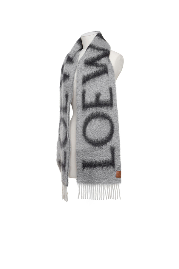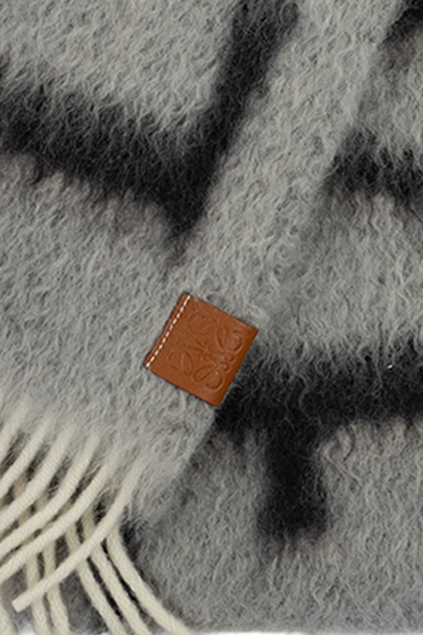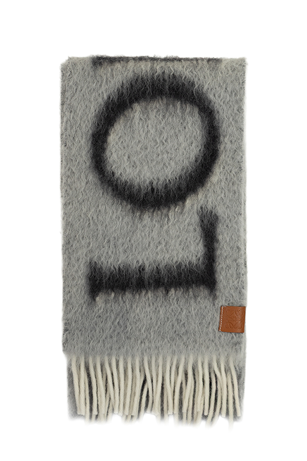- Шарф із суміші вовни та мохеру, фірмовий надпис LOEWE, краї з бахромою, шкіряна нашивка з тисненням Anagram