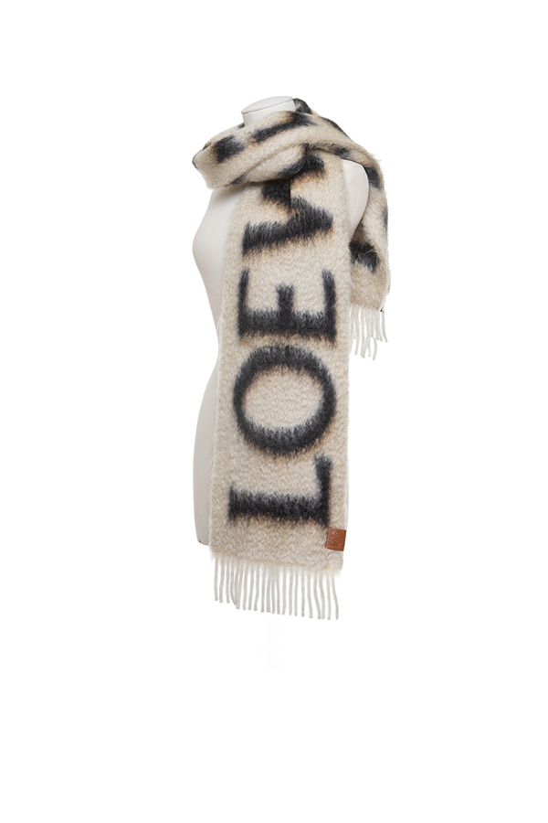 - Шарф із суміші вовни та мохеру, фірмовий надпис LOEWE, краї з бахромою, шкіряна нашивка з тисненням Anagram