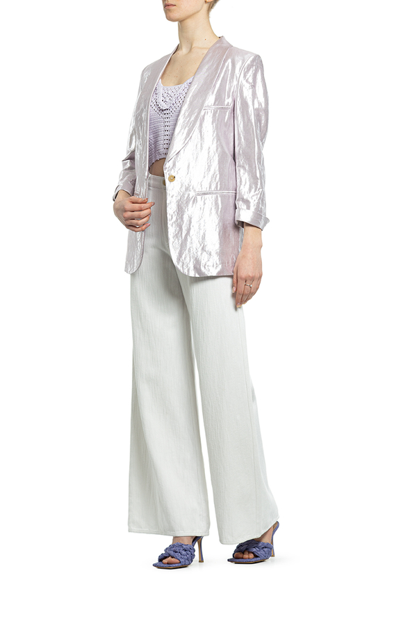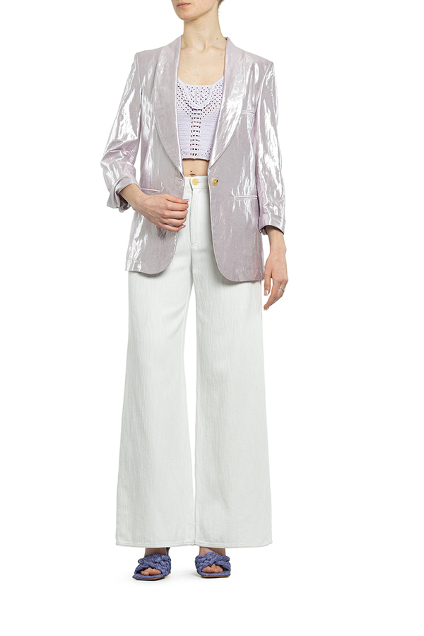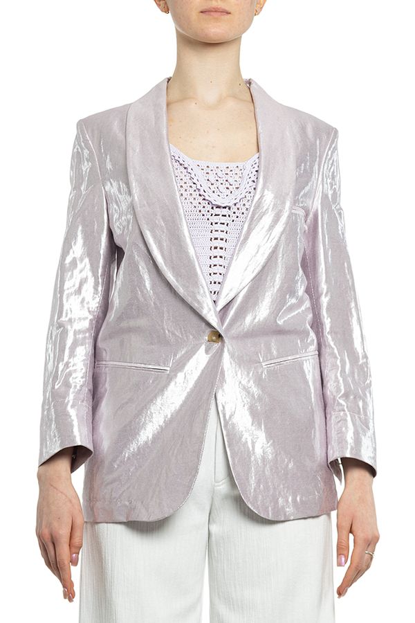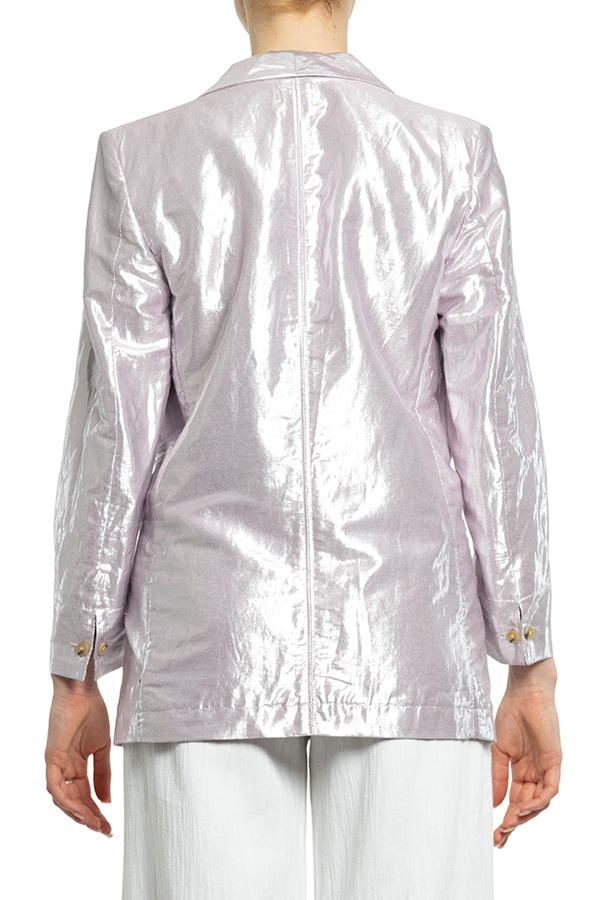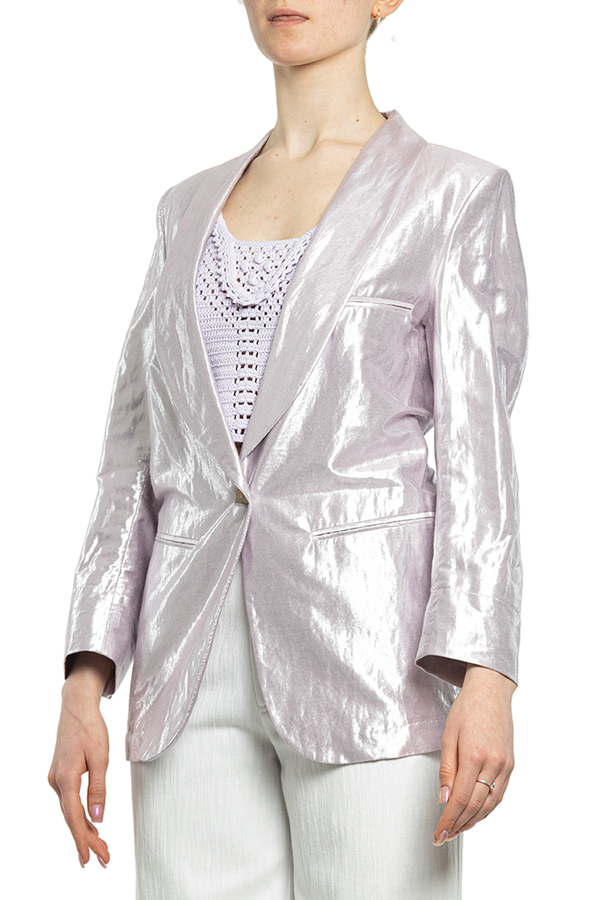 - Блейзер з віскози, льону та люрексу. Мерехтливий блейзер у лляній суміші, знятий люрексом. Має пряму посадку з чітко вираженими плечима.