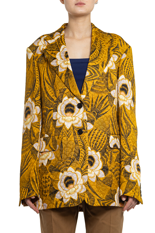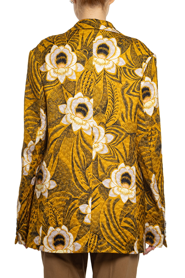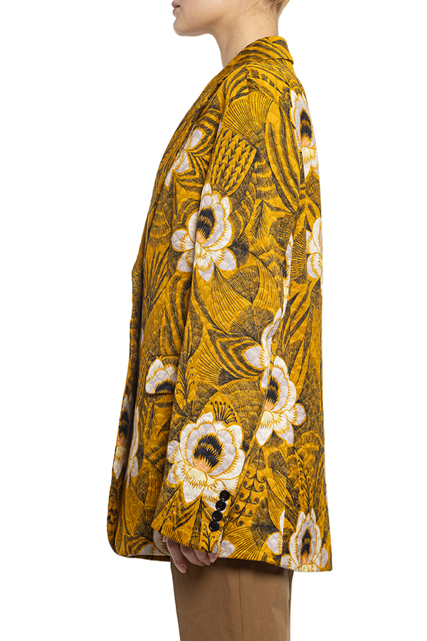 - Барвистий піджак з принтом квітів. Довгі рукава, застібка на гудзики.