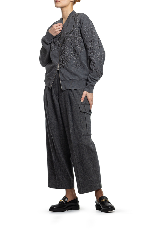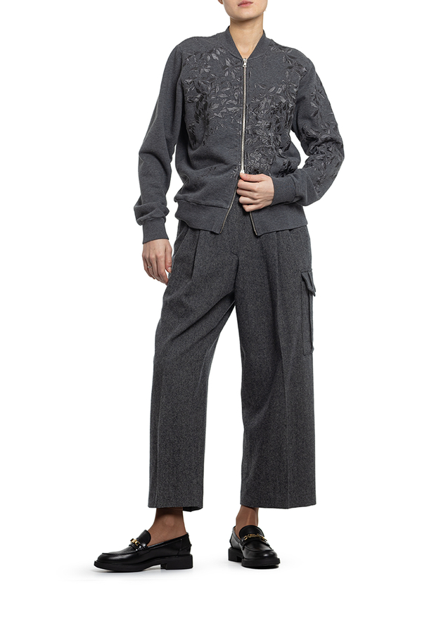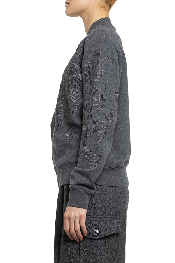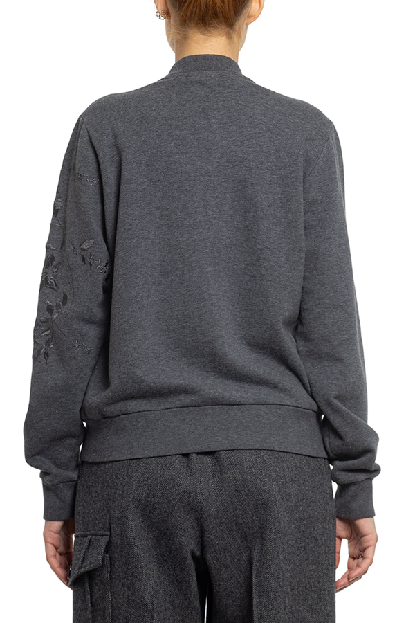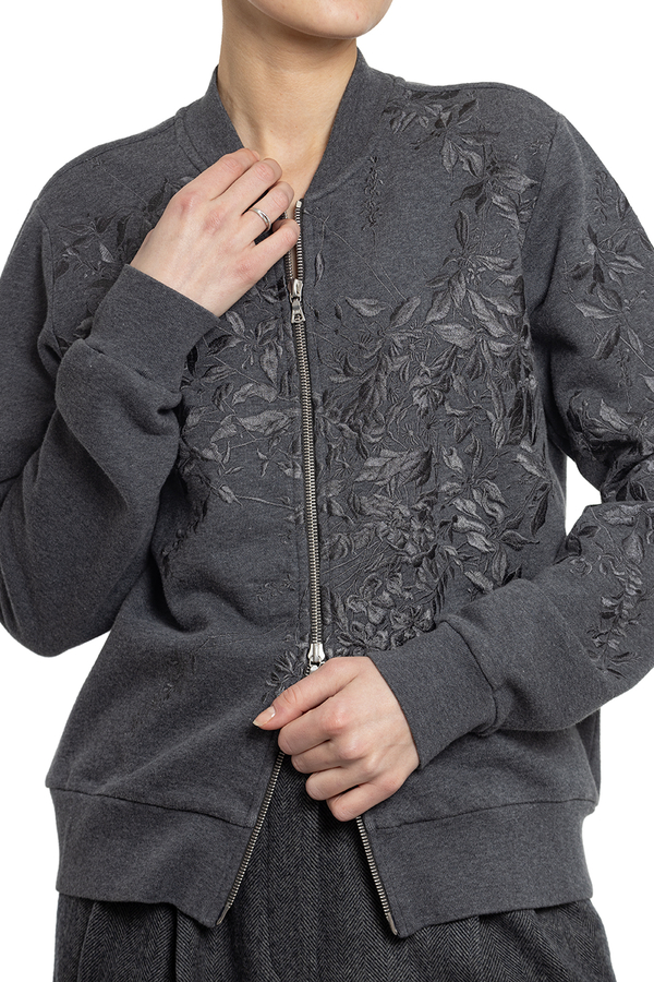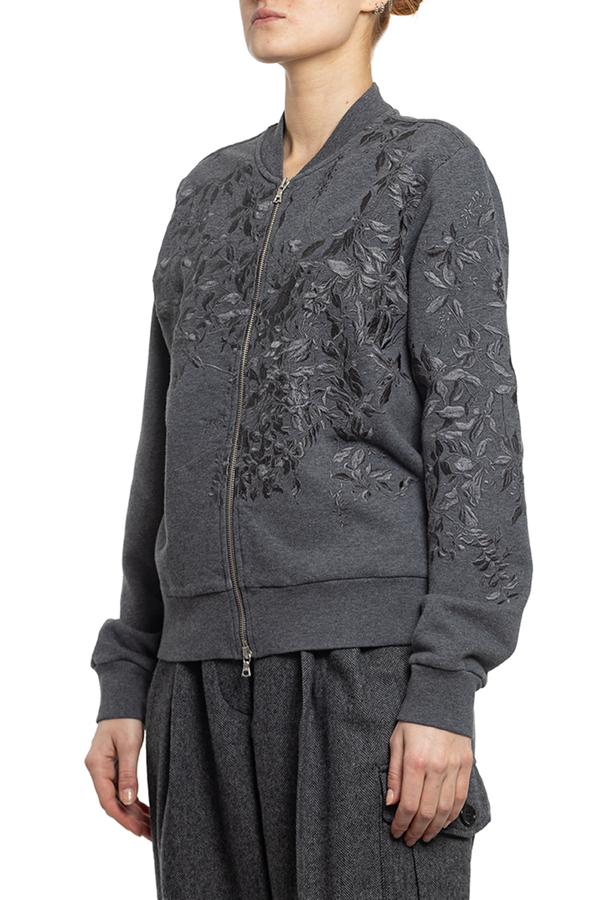 - Бавовняна кофта на блискавці. Спереду і на рукавах вишивка сірого кольору. Довгі рукава, еластичні манжети і низ виробу.
