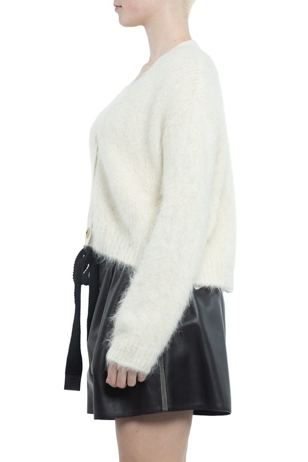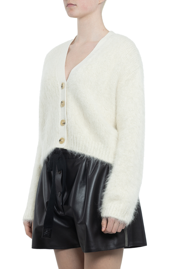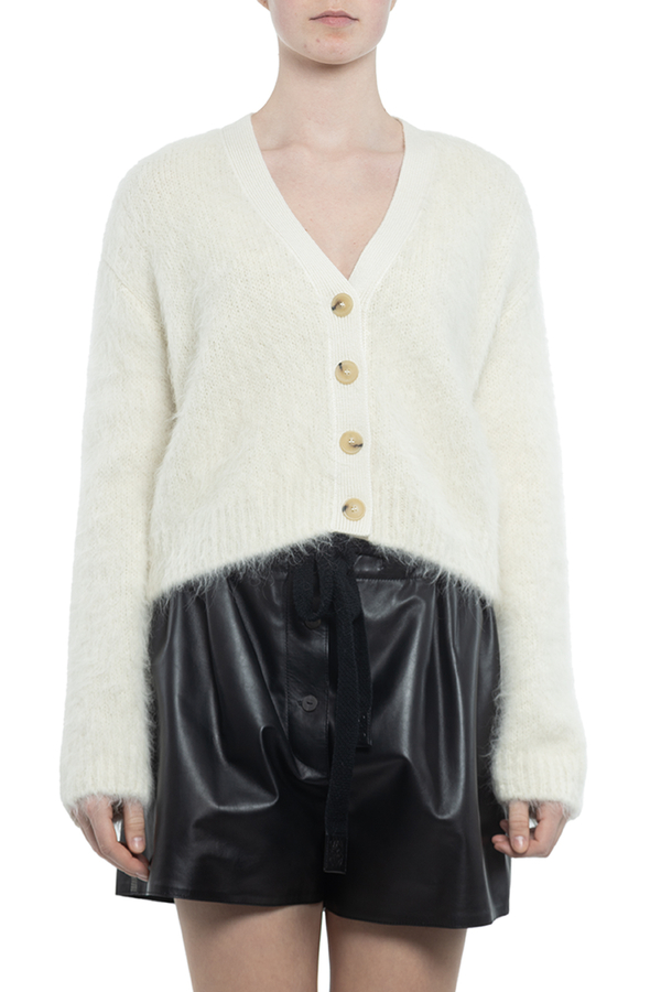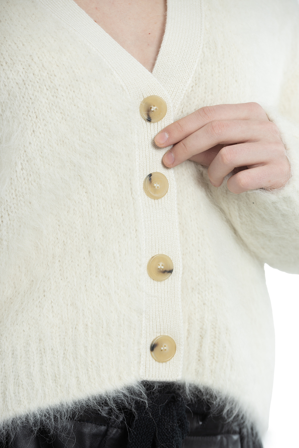 - Кардіган з довгими рукавами, V-подібний виріз, застібка на гудзики спереду, логотип на спині