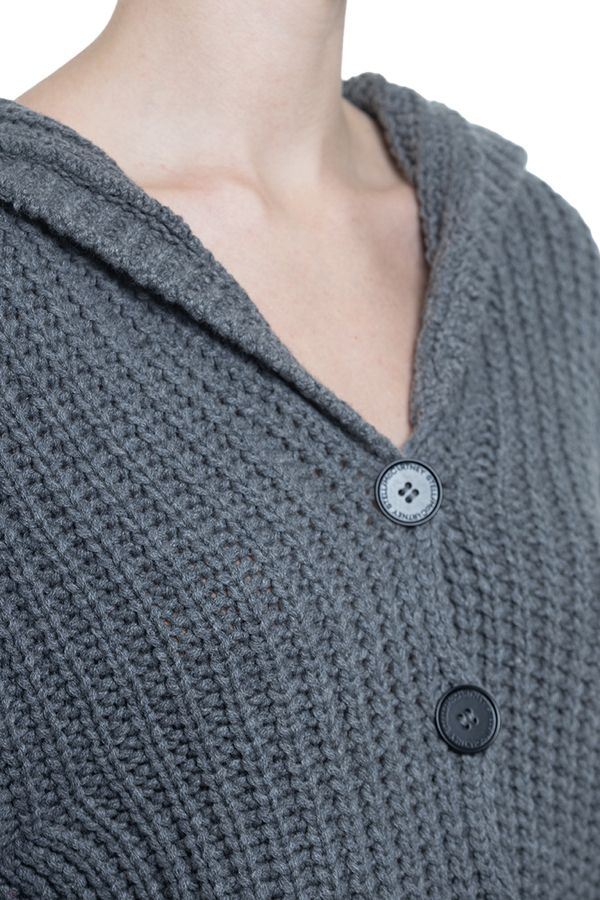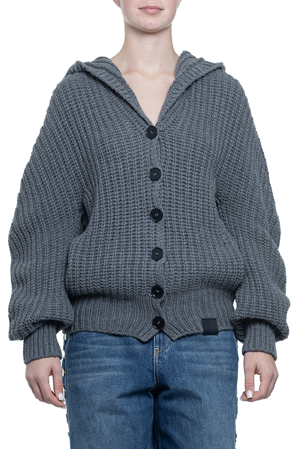 - Кардіган з капюшоном, довгі рукави, ребристі манжети та низ, дві бічні кишені, спереду застібка на гудзики з логотипом