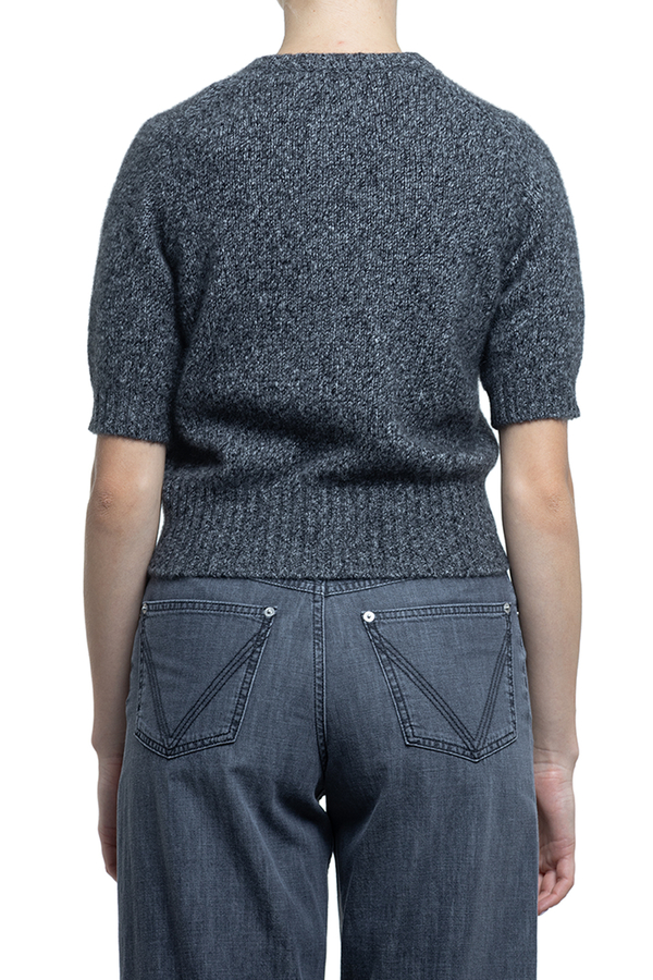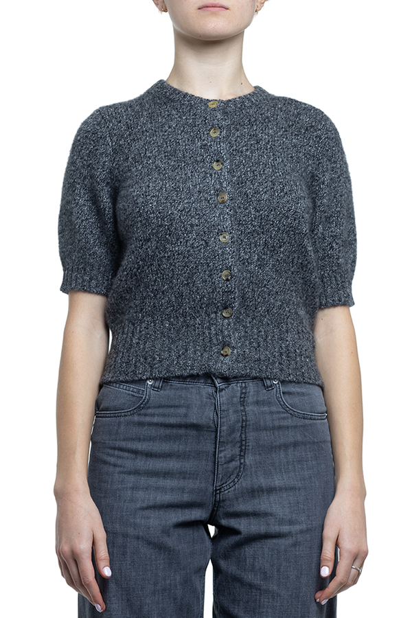 - Кофта з короткими рукавами, круглий виріз горловини, ребристі вставки, застібка на гудзики з логотипом