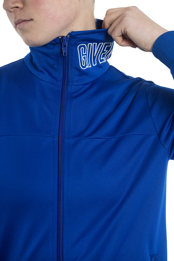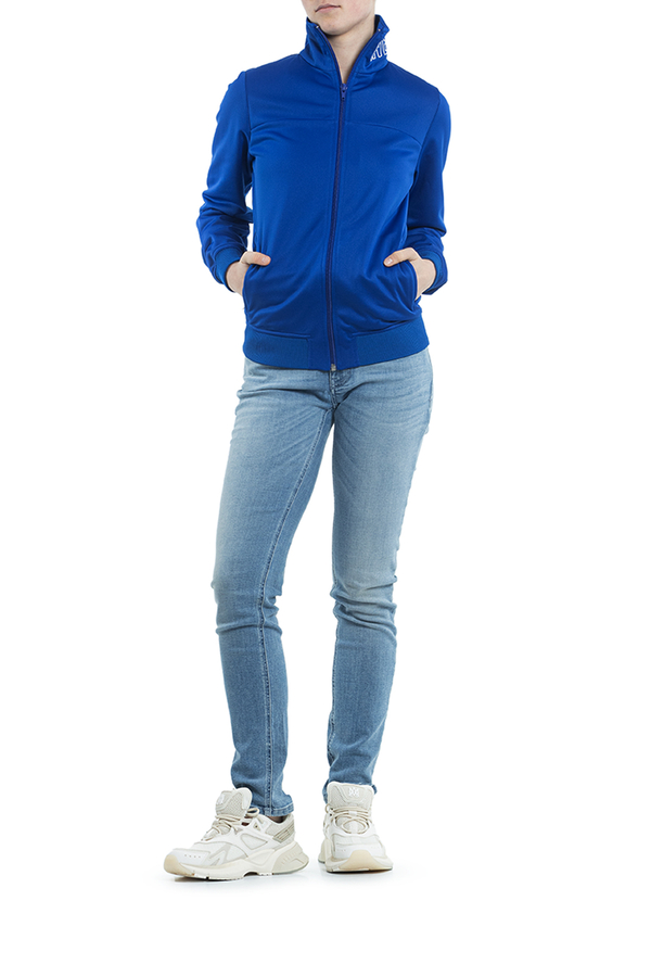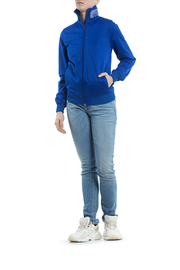 - Спортивна кофта с застібкою на блискавку. З вишитим написом на комірі. Д двома прорізними кишенями з боків.