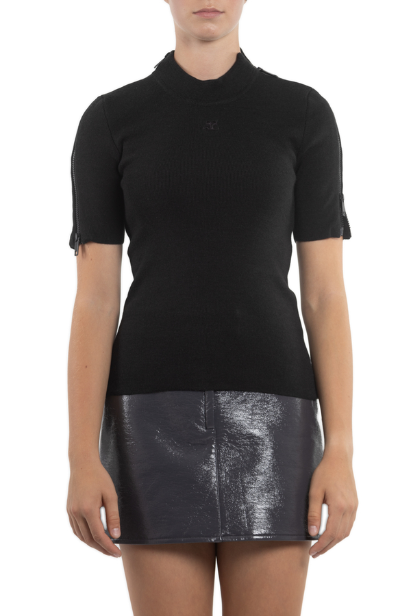 - Светр з короткими рукавами. Декорований блискавками на рукавах і плечах.