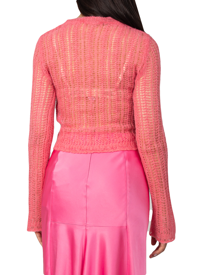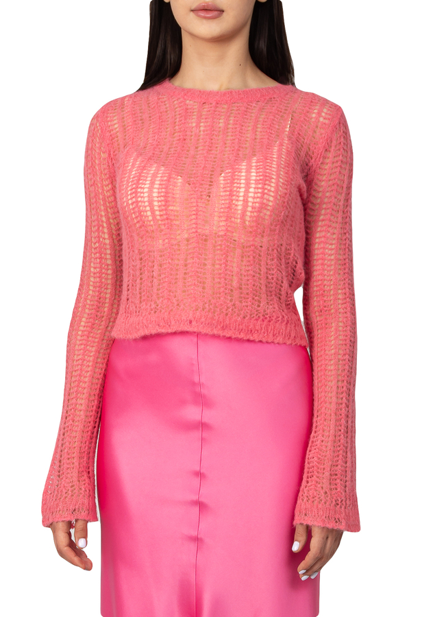 - Светр відкритої в’язки, кругле горло, довгі рукава