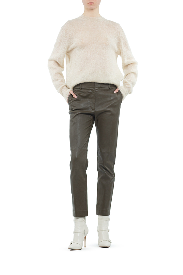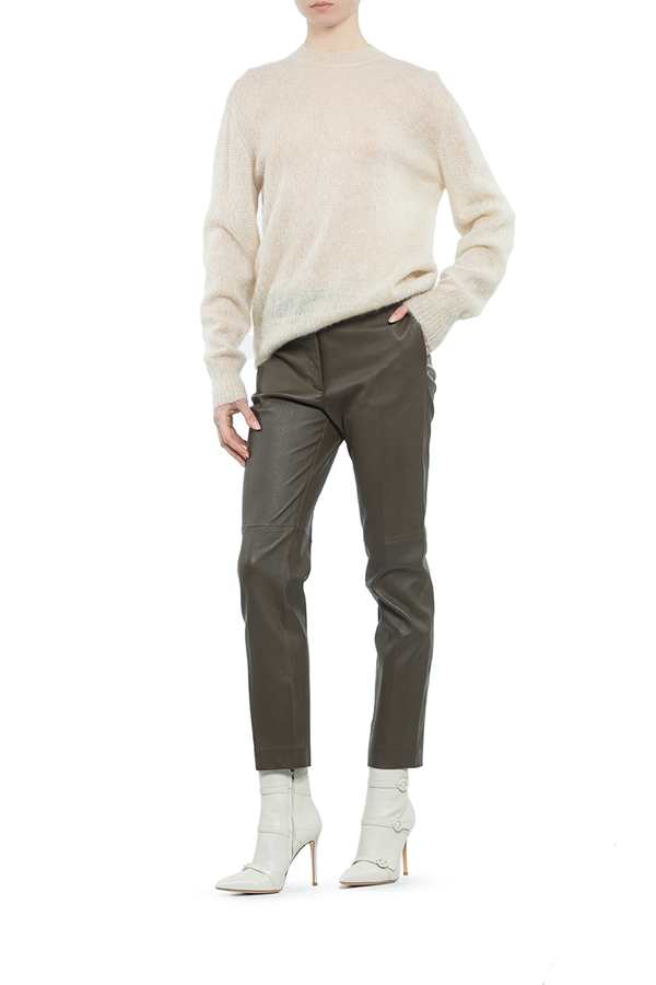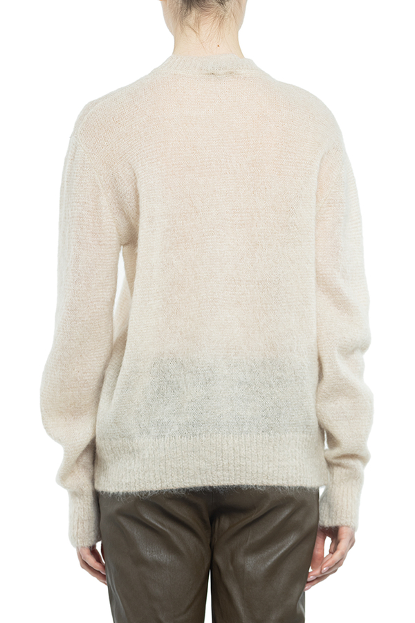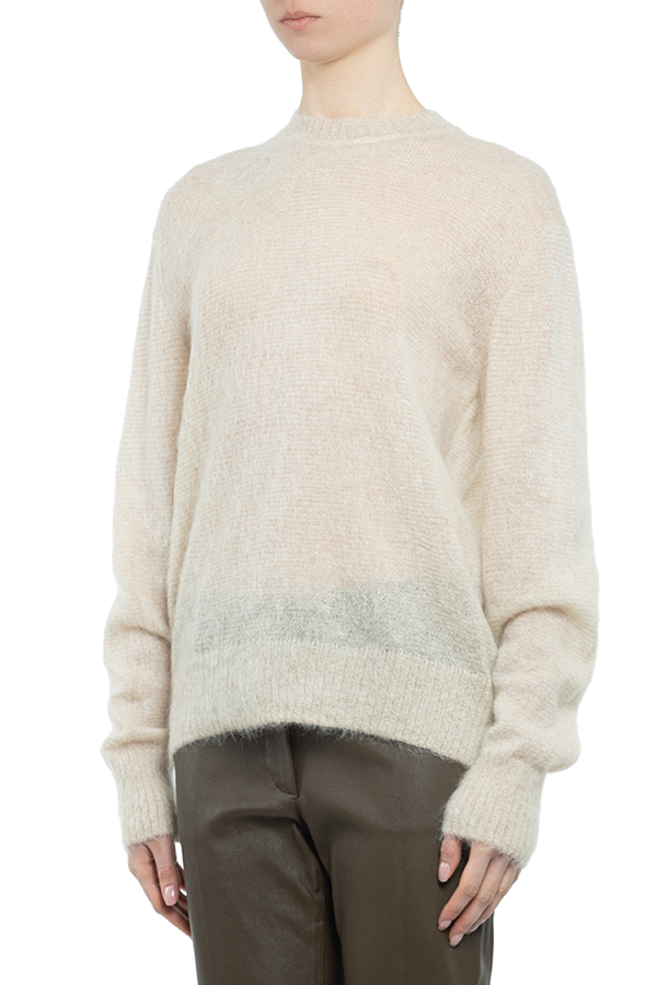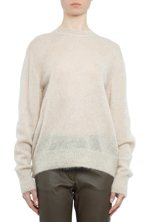 - Тонкий мохеровий светр з круглим вирізом горловини і довгими рукавами.