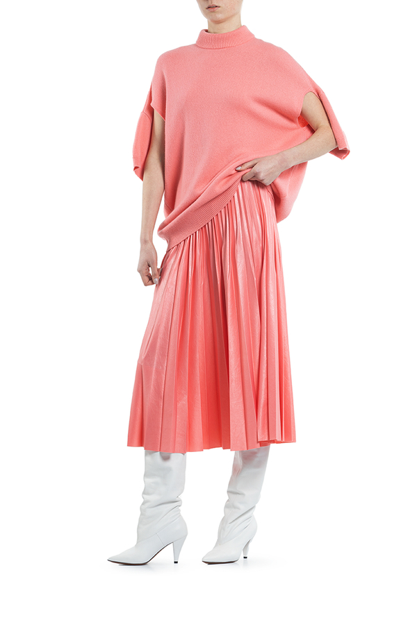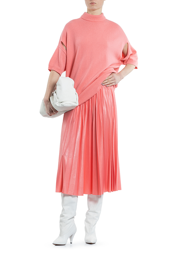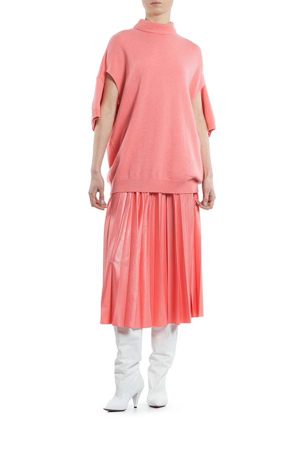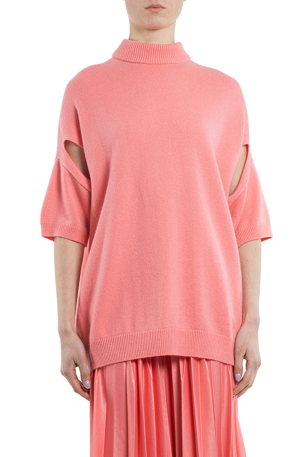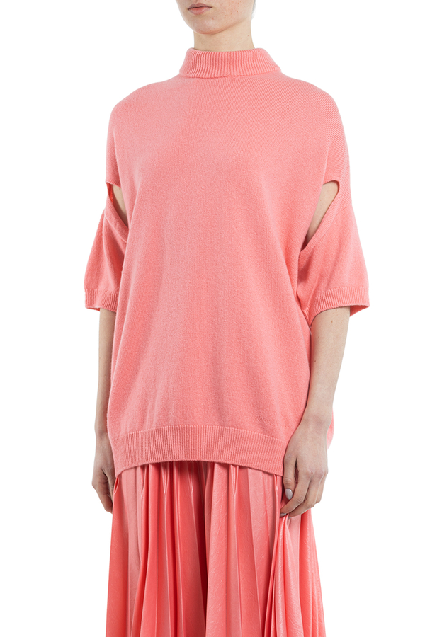 - Кашеміровий довгий светр з високим коміром і короткими рукавами.