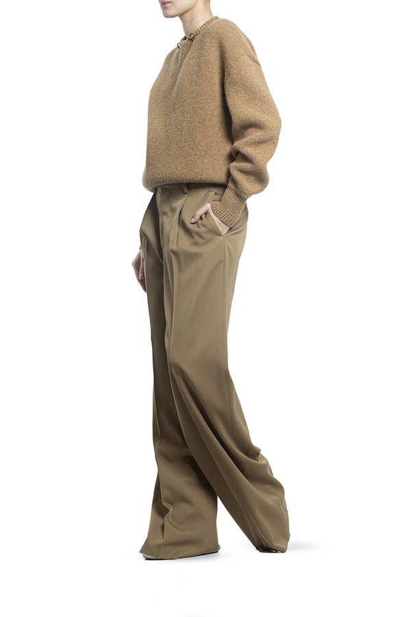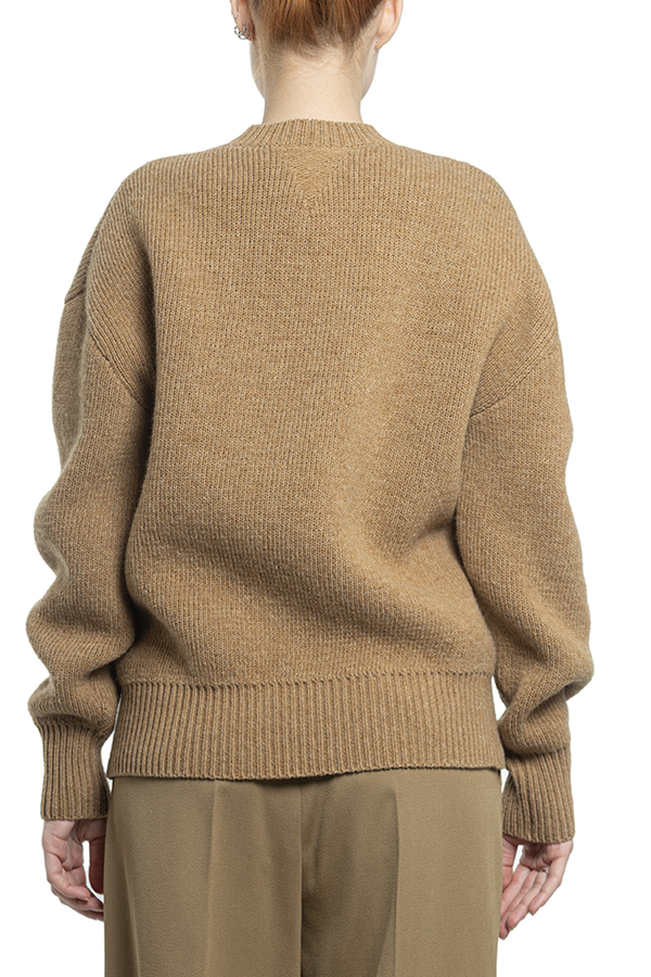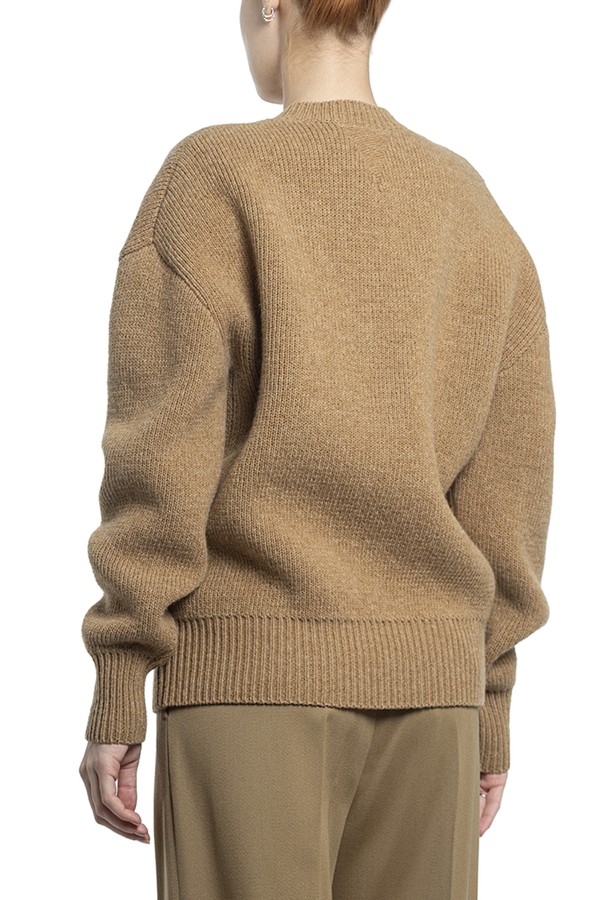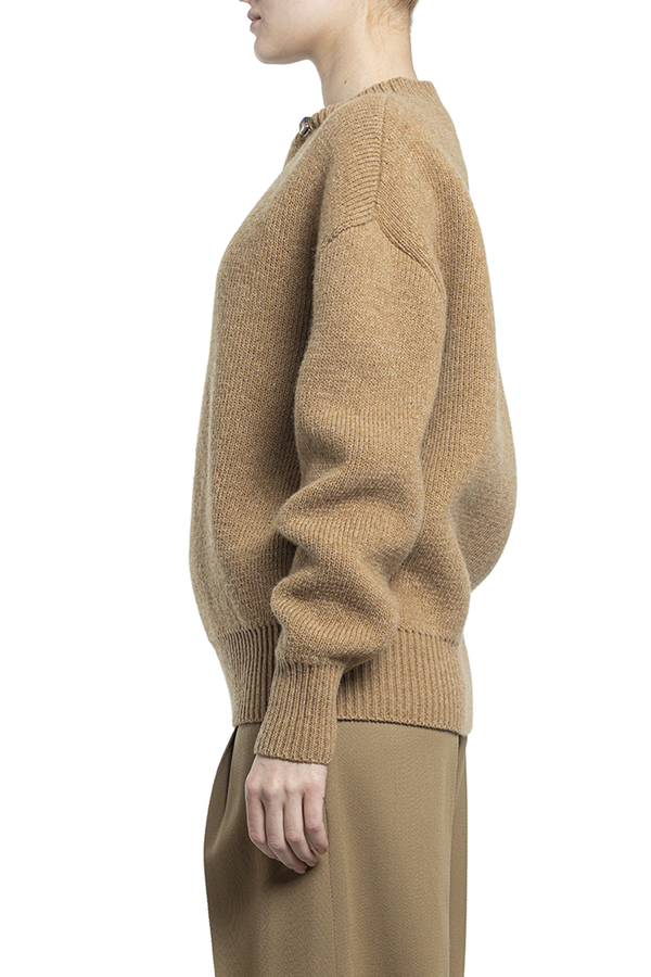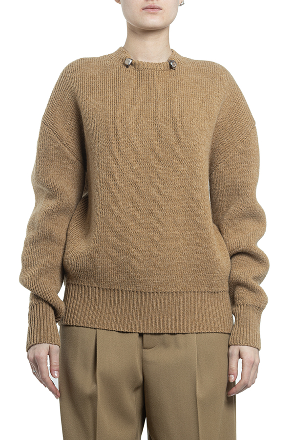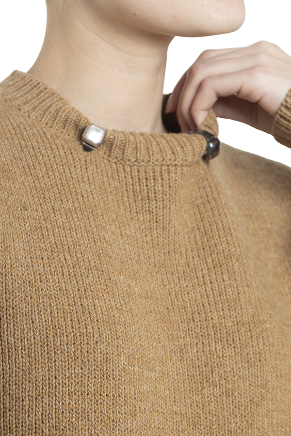 - Вовняний светр. Круглий виріз декорували вставками з полірованого ювелірного сплаву.