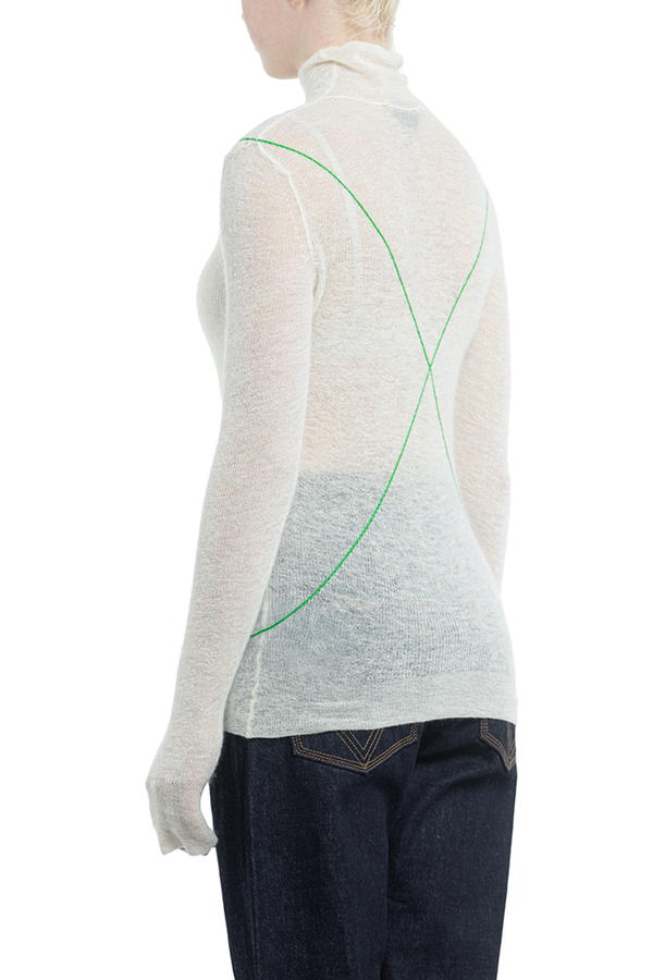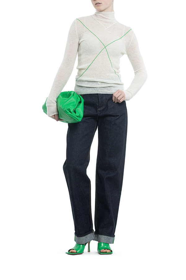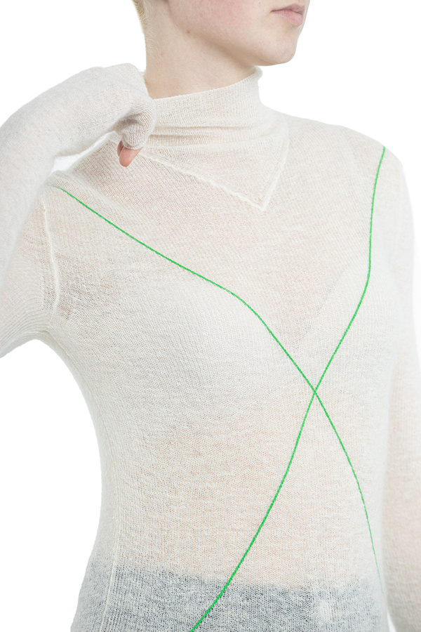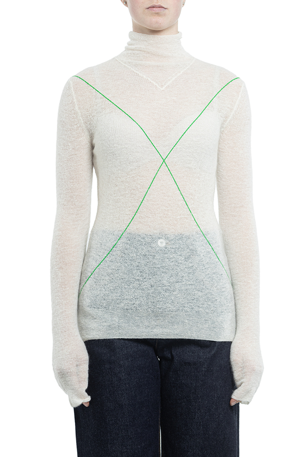 - Смугастий джемпер з горловиною. Довгі рукави, ребристі манжети і подол.