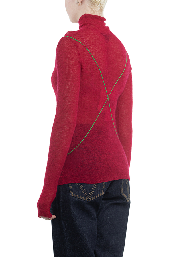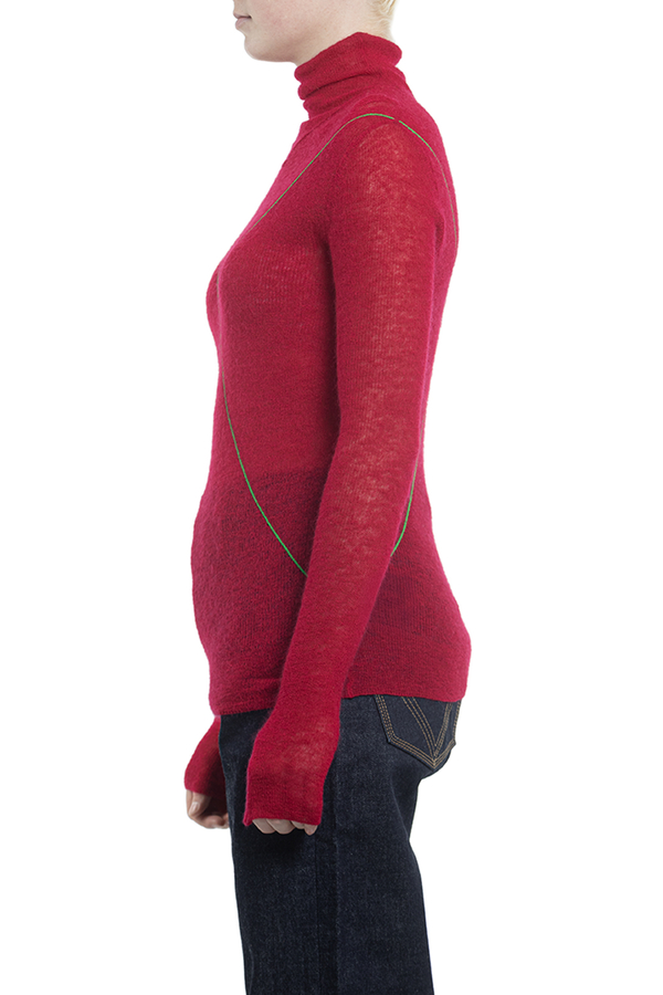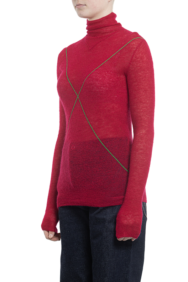 - Смугастий джемпер з горловиною. Довгі рукави, ребристі манжети і подол.