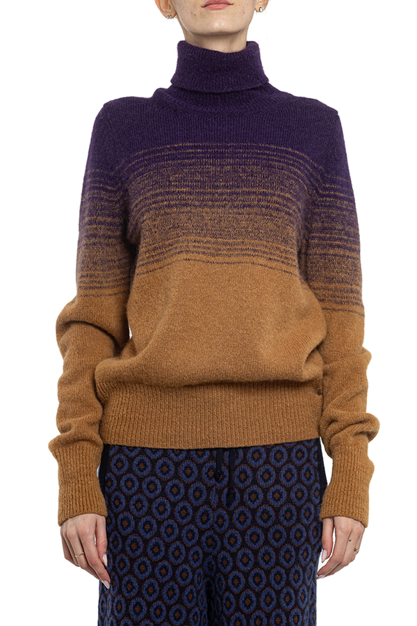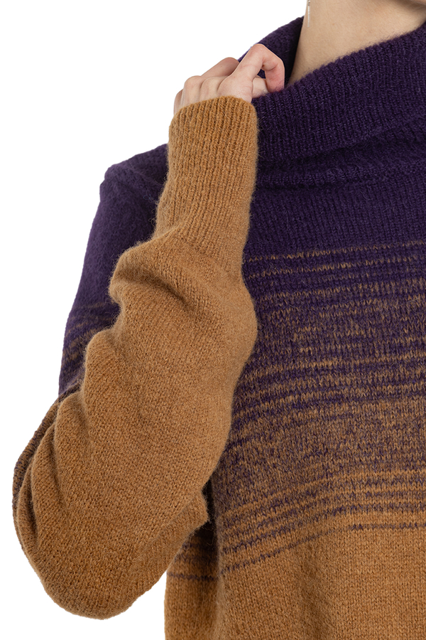 - Светр з високим коміром з градієнтним двуколірним переходом по всій поверхні.