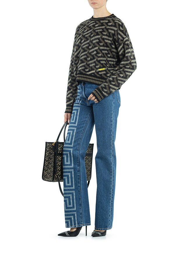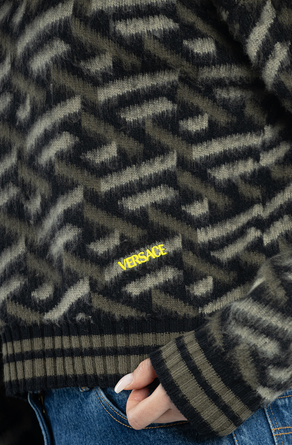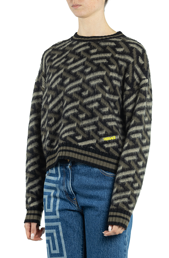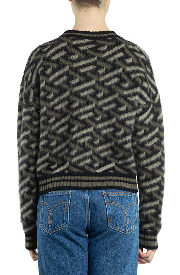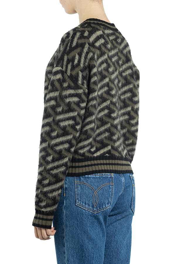 - Вовняний светр з патерном логотипу Greca. Круглий виріз горла, довгу рукави.