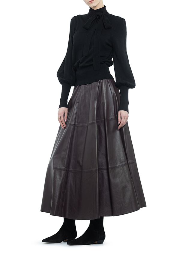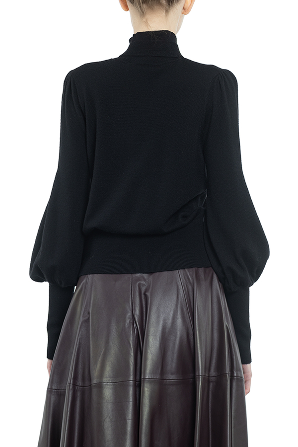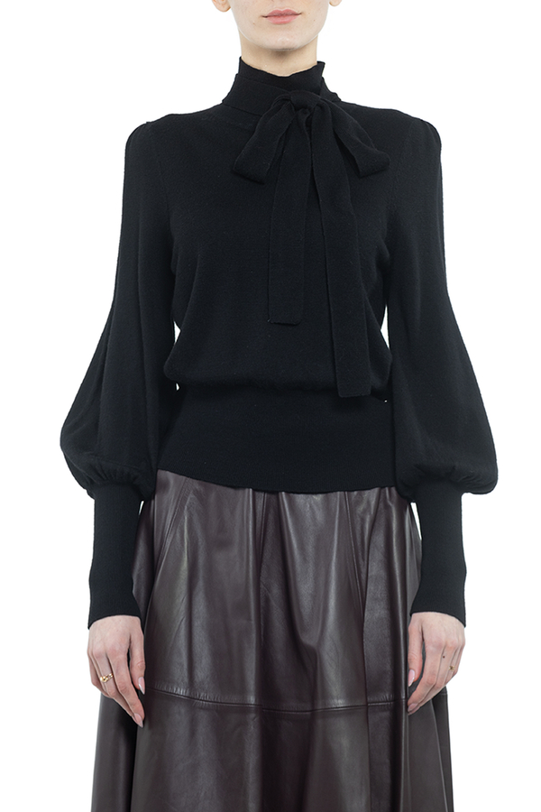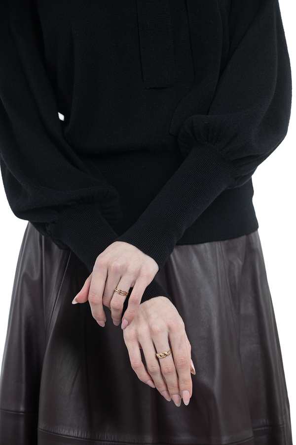 - Светр-гольф з довгими об'ємними рукавами і краваткою. На високих еластичних манжетах і подолі.