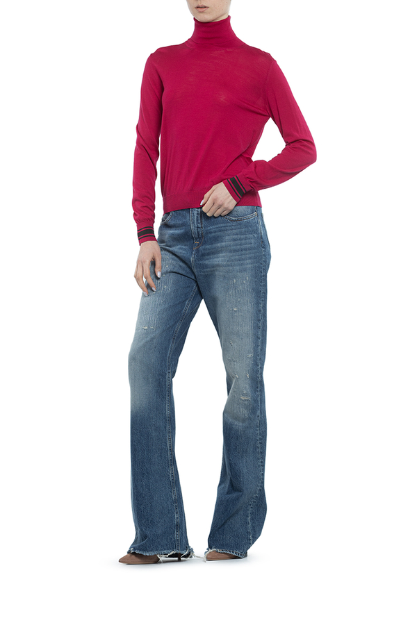 - Светр з високим коміром і довгими рукавами. З тонкої м'якої вовни.
