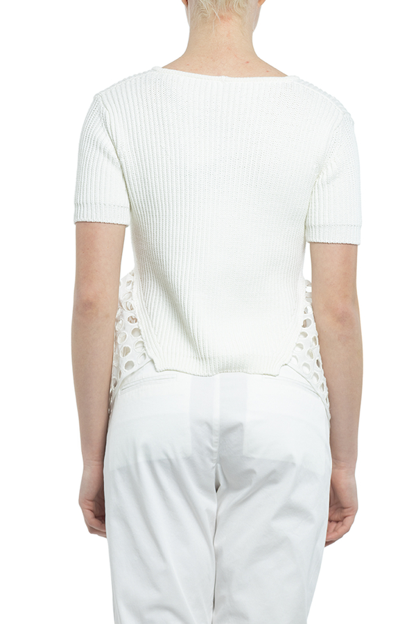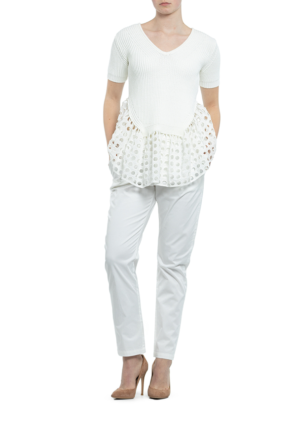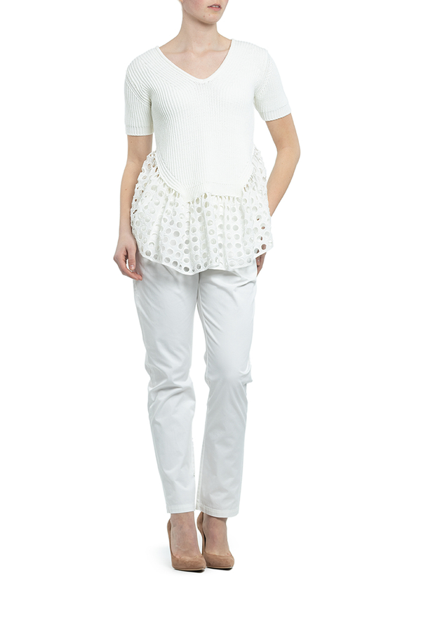 - Светр з коротким рукавом і декоративною вставкою знизу.