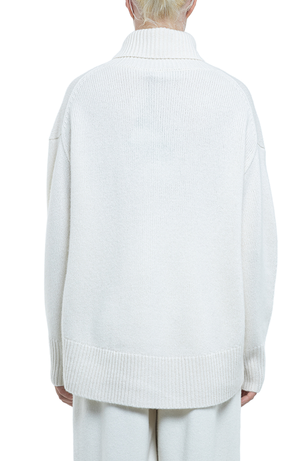 - Светр вільного крою з ребристими вставками, довгі рукави, занижена лінія плечей, подовжена спина, висока горловина