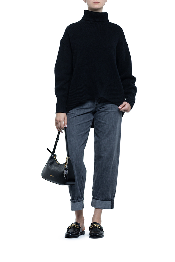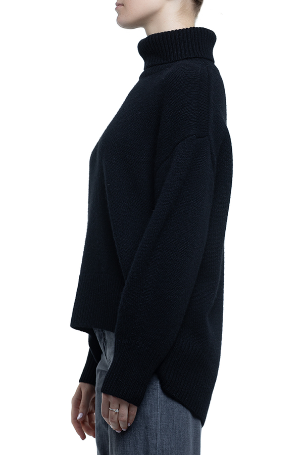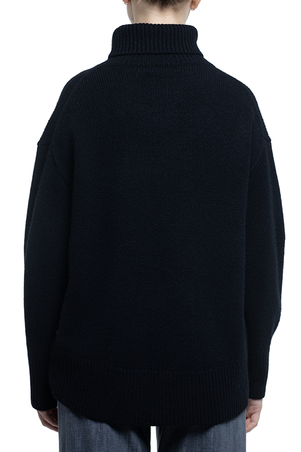 - Светр вільного крою з ребристими вставками, довгі рукави, занижена лінія плечей, подовжена спина, висока горловина