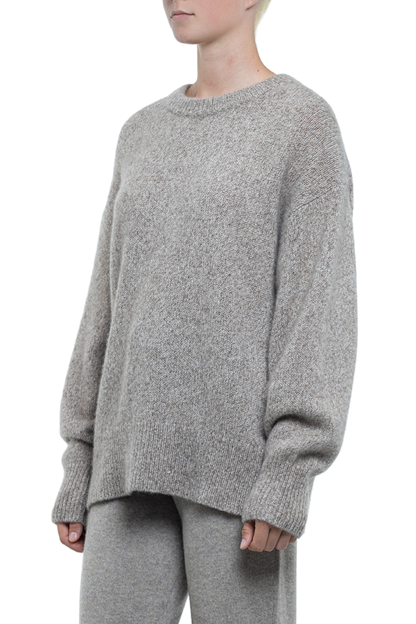 - Светр вільного крою, довгі рукави, ребристі вставки, круглий виріз горловини, занижена лінія плечей