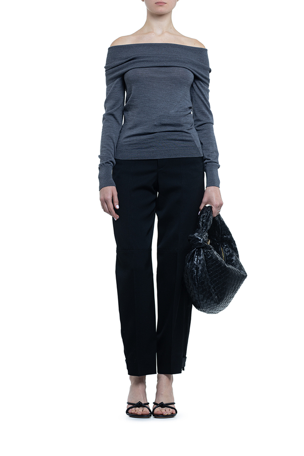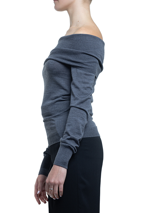 - Светр з відкритими плечима, ребристі вставки, довгі рукави