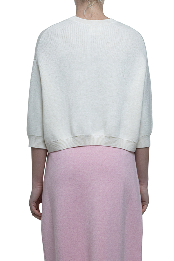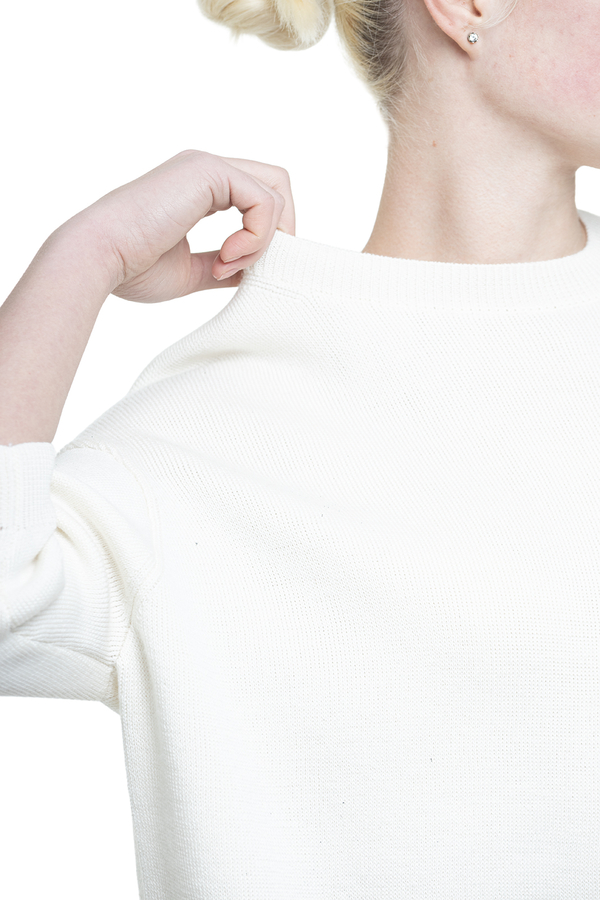 - Светр тонкої в'язки, вільний крій, укорочені рукави, занижена лінія плечей, ребриста обробка