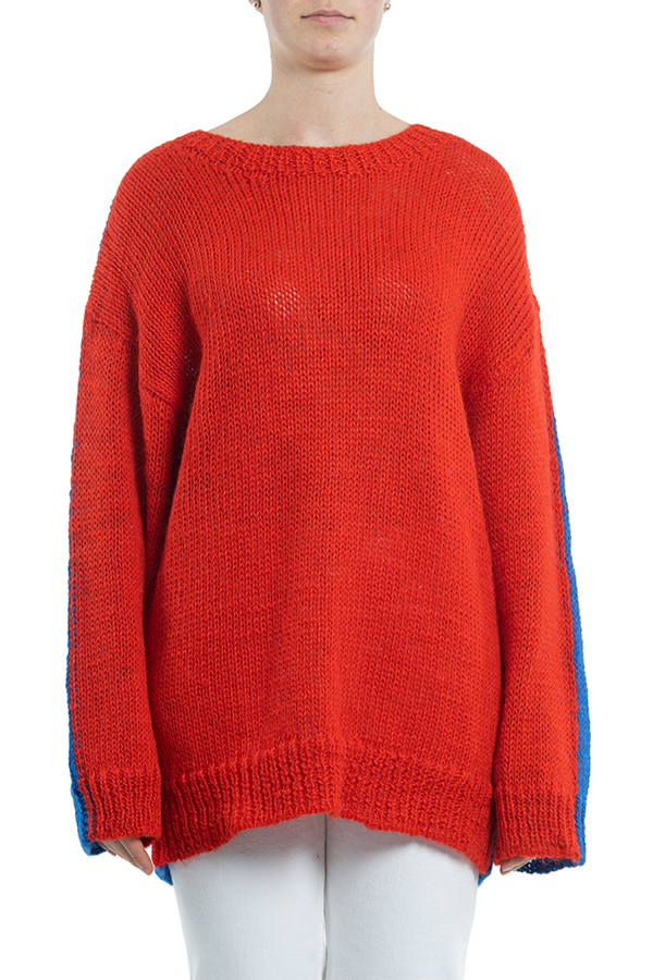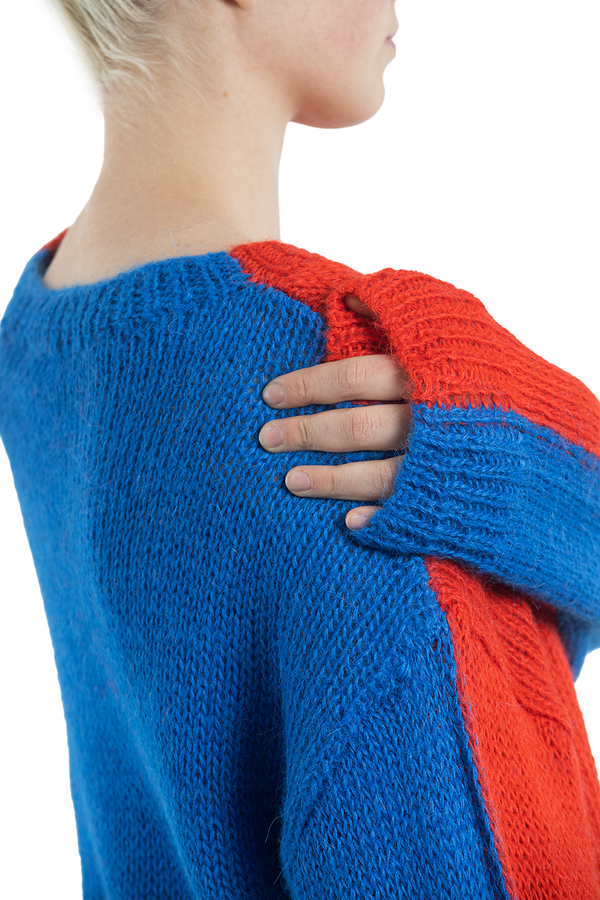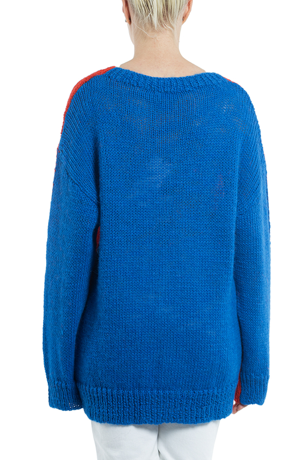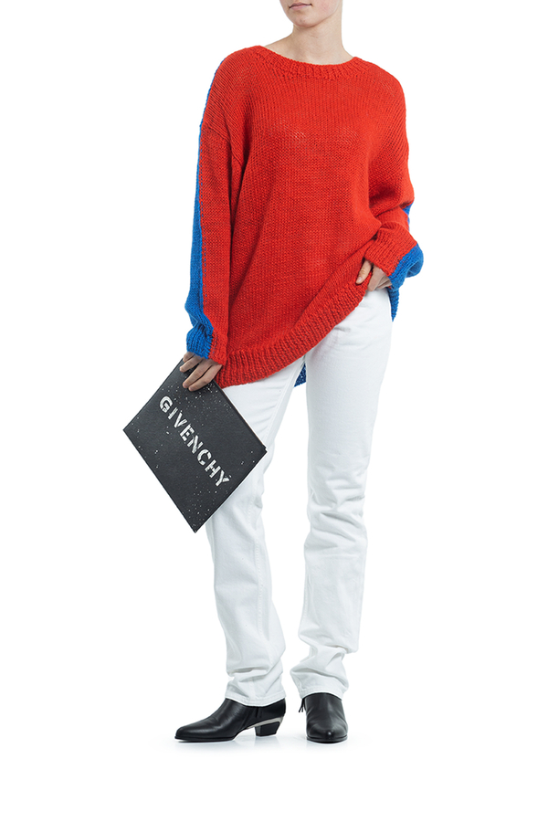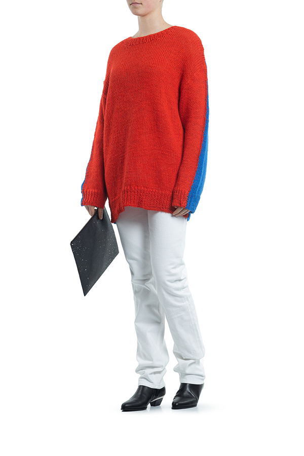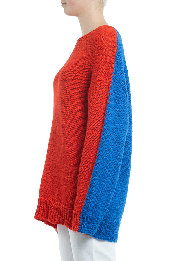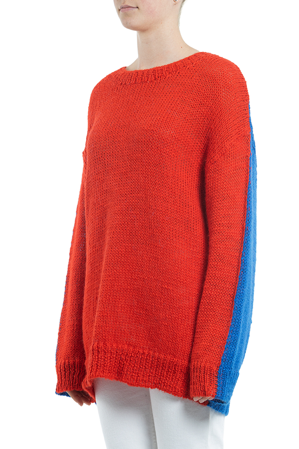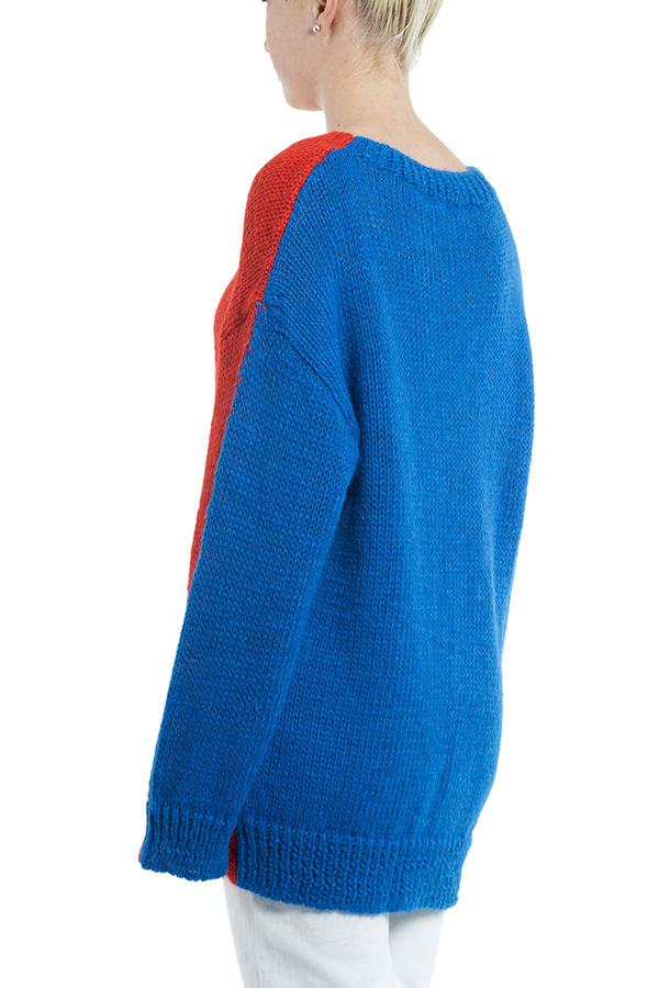 - В'язаний светр в двуколірному дизайні. Довгі рукави, круглий комір, вільний крій, оверсайз модель.