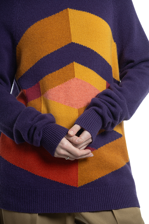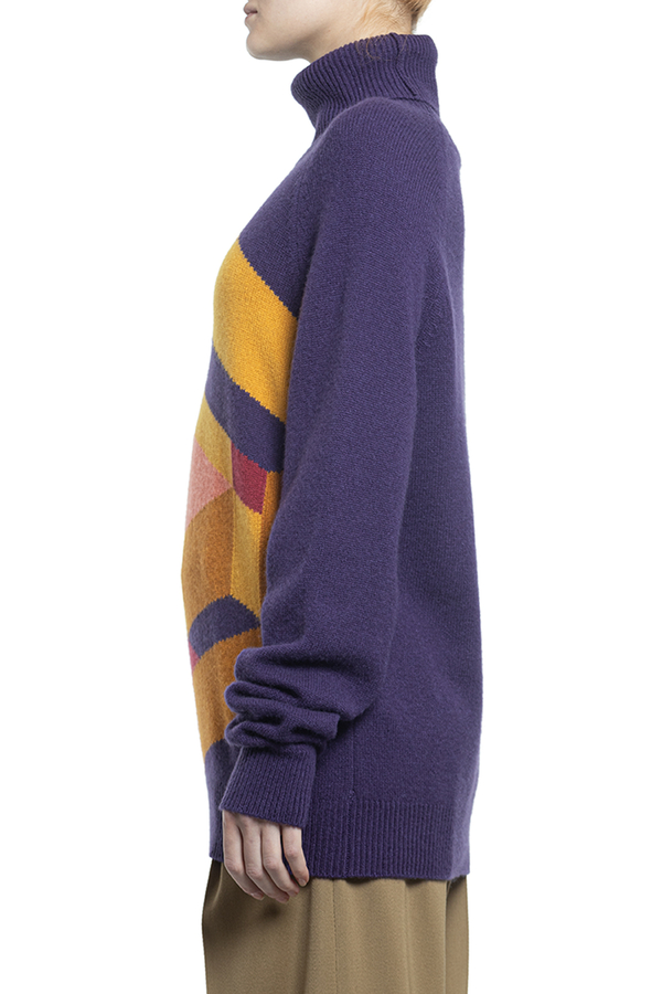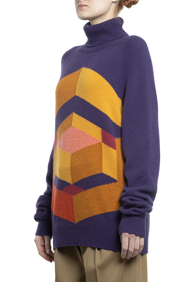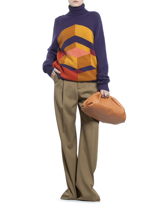 - Кашеміровий светр з високим коміром і геометричним візерунком.