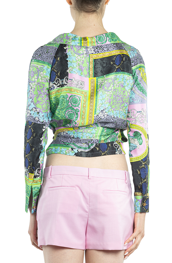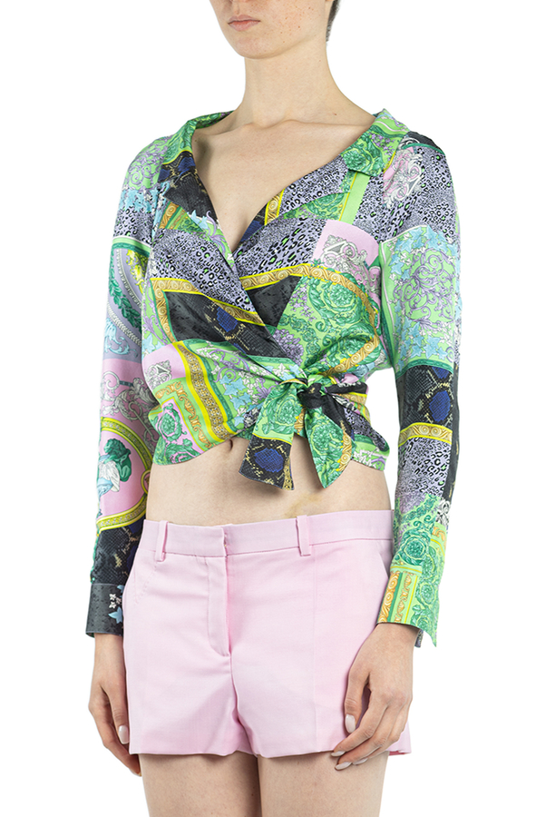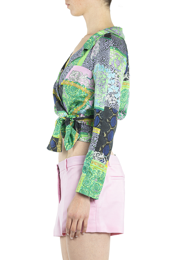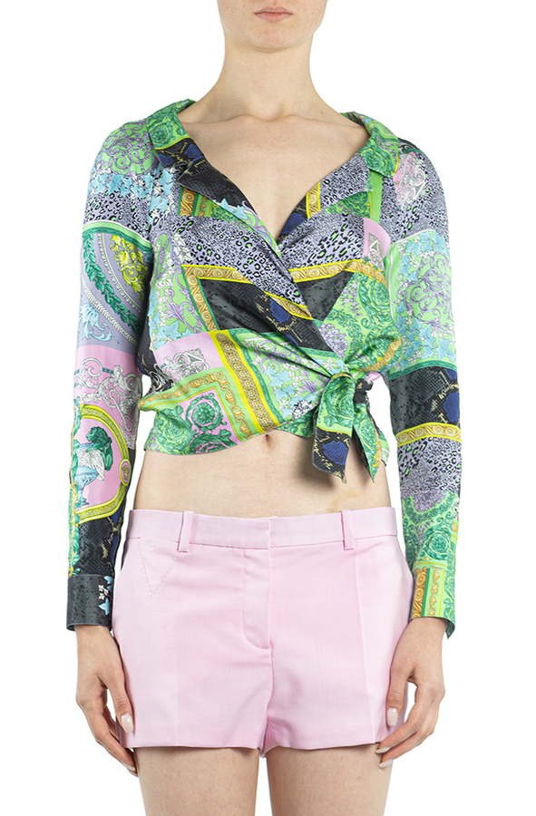 - Блуза з довгим рукавом на зав’язках, різнокольорові квадрати