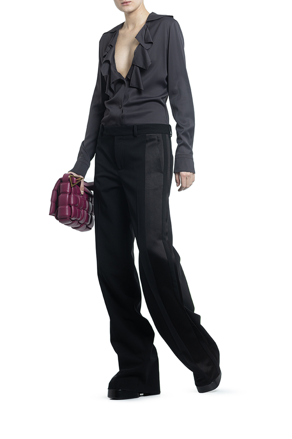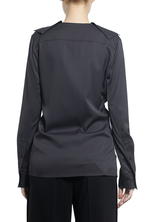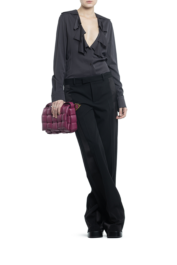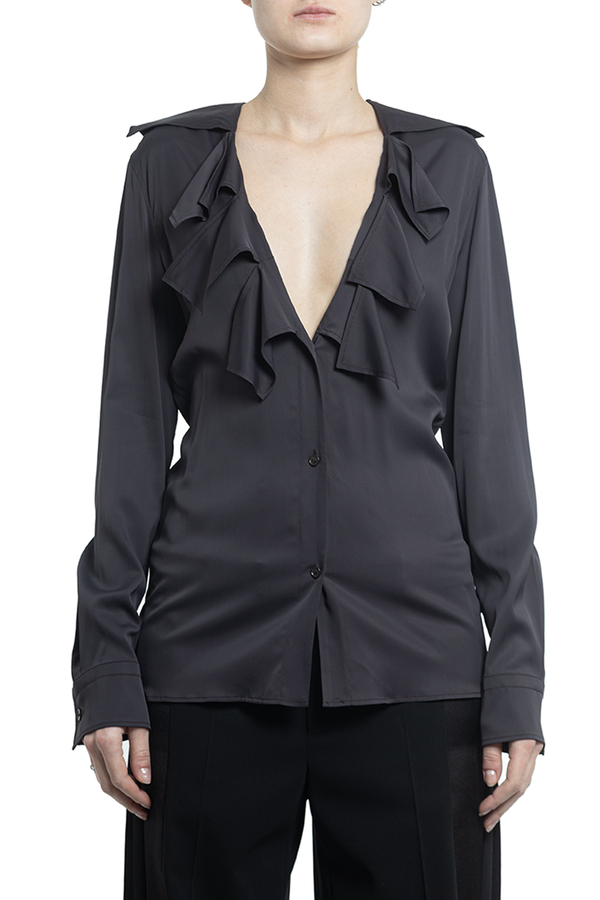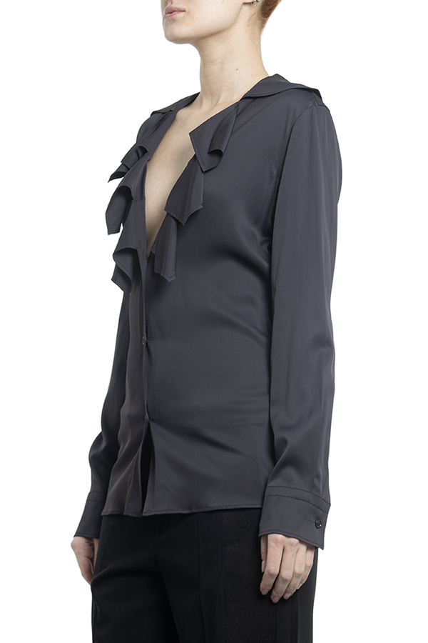 - Блуза з довгими рукавами, манжети на гудзиках, спереді волани