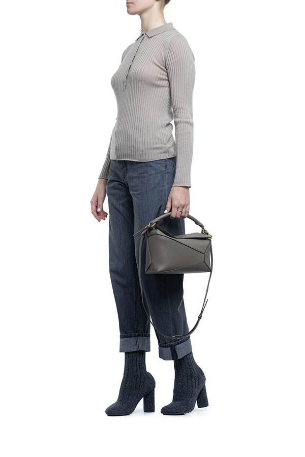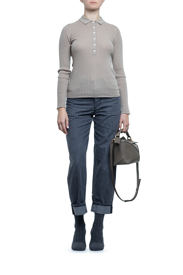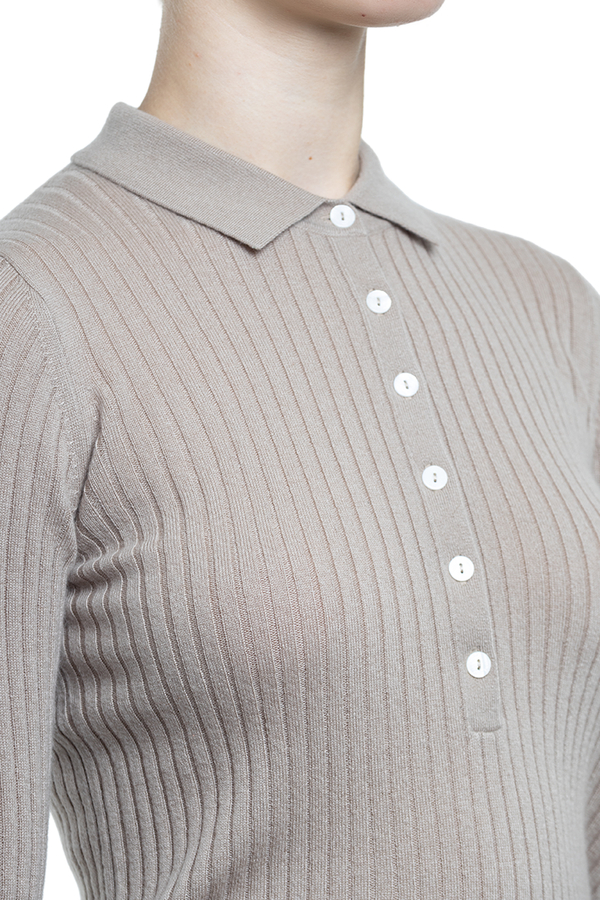 - Поло в рубчик з довгими рукавами, класичний комір, спереду планка з гудзиками