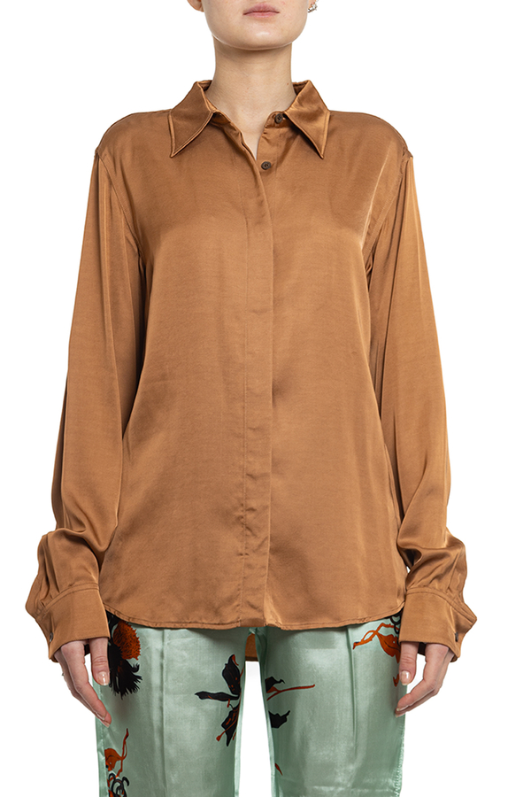 - Сорочка з довгим рукавом. Застібка на приховані гудзики.