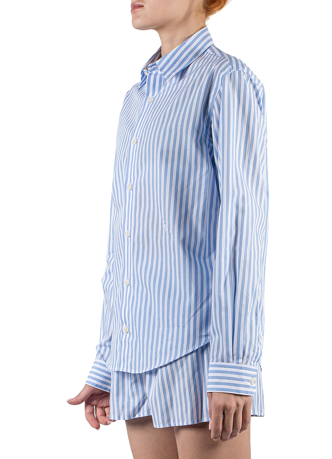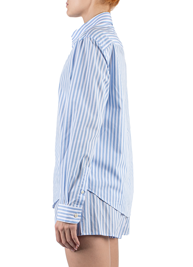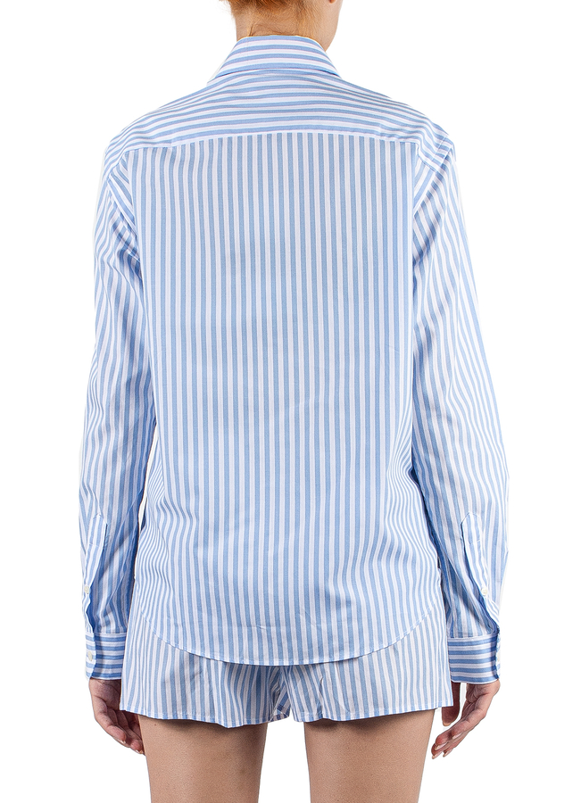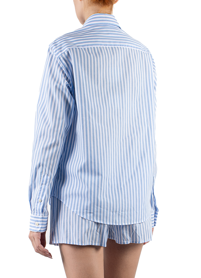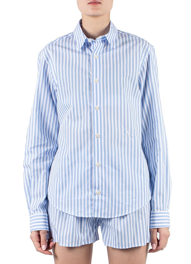 - Сорочка у смужку з довгими рукавами, класичний комір, манжети та застібка на гудзики, вишитий логотип спереду