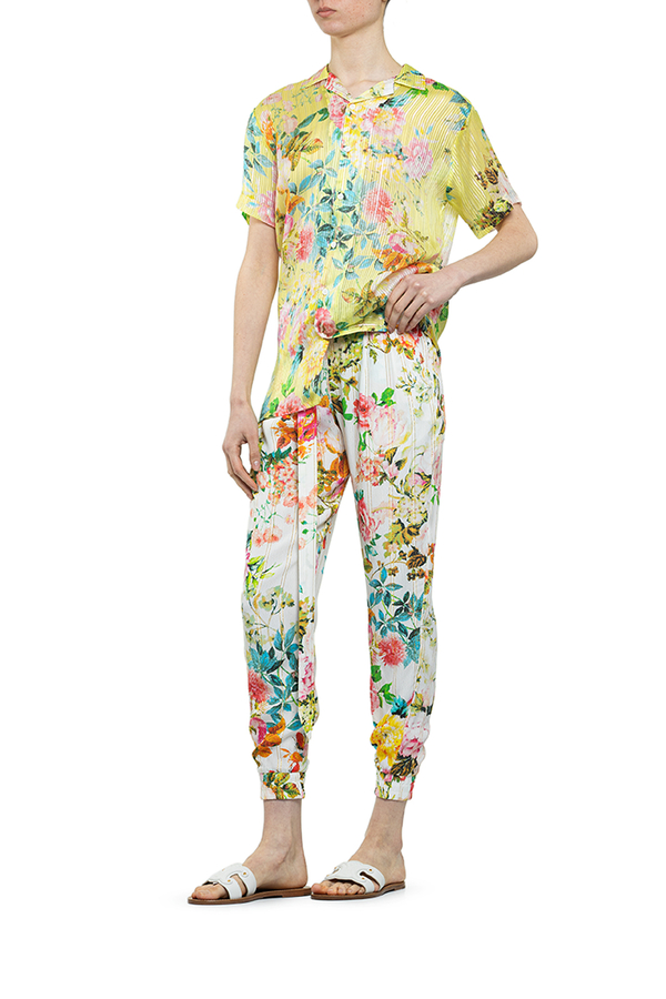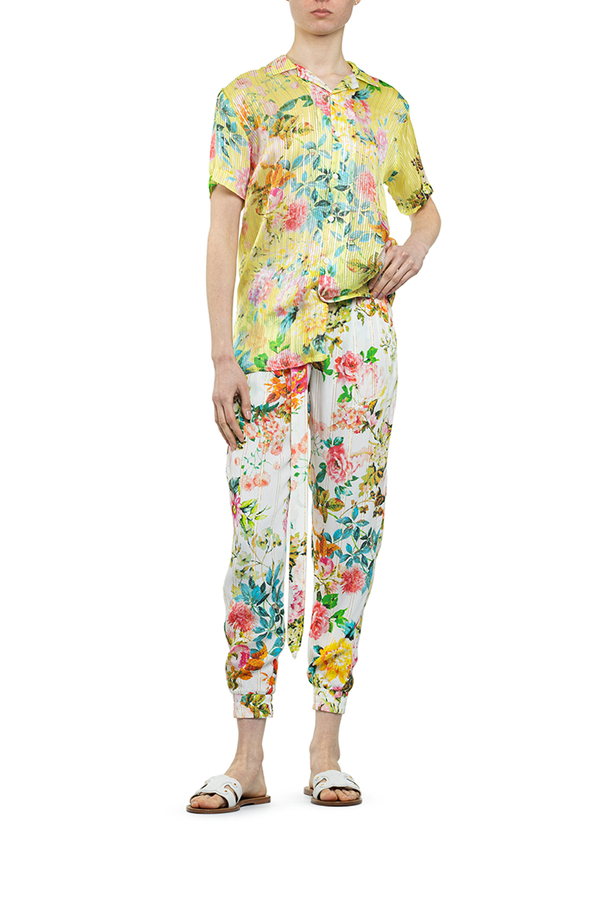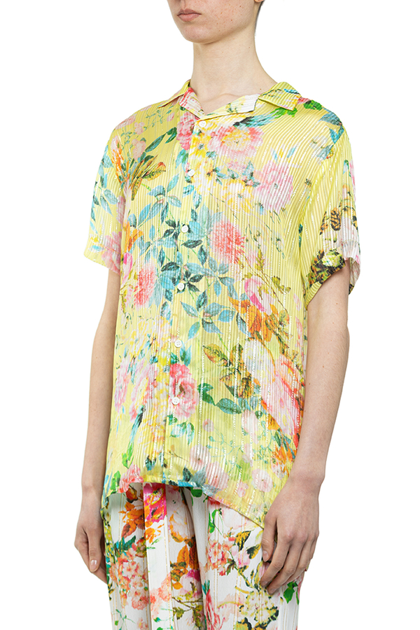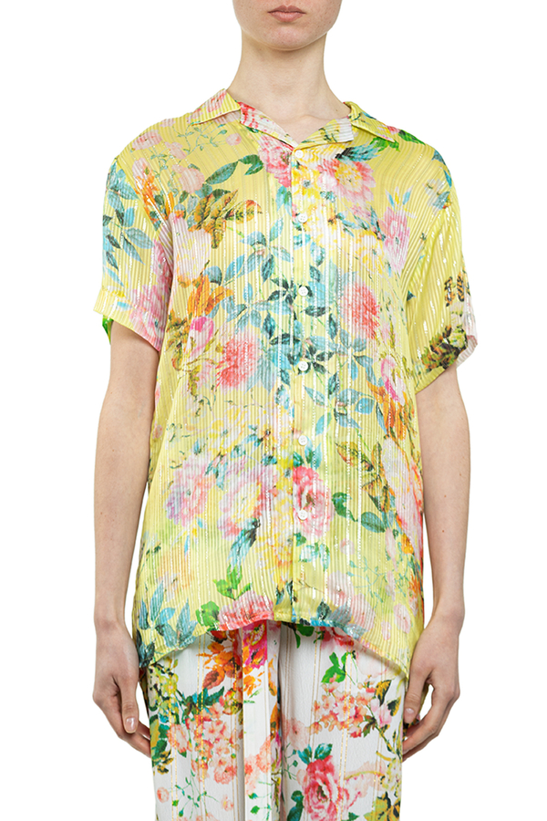 - Сорочка жовта у квітах, короткий рукав