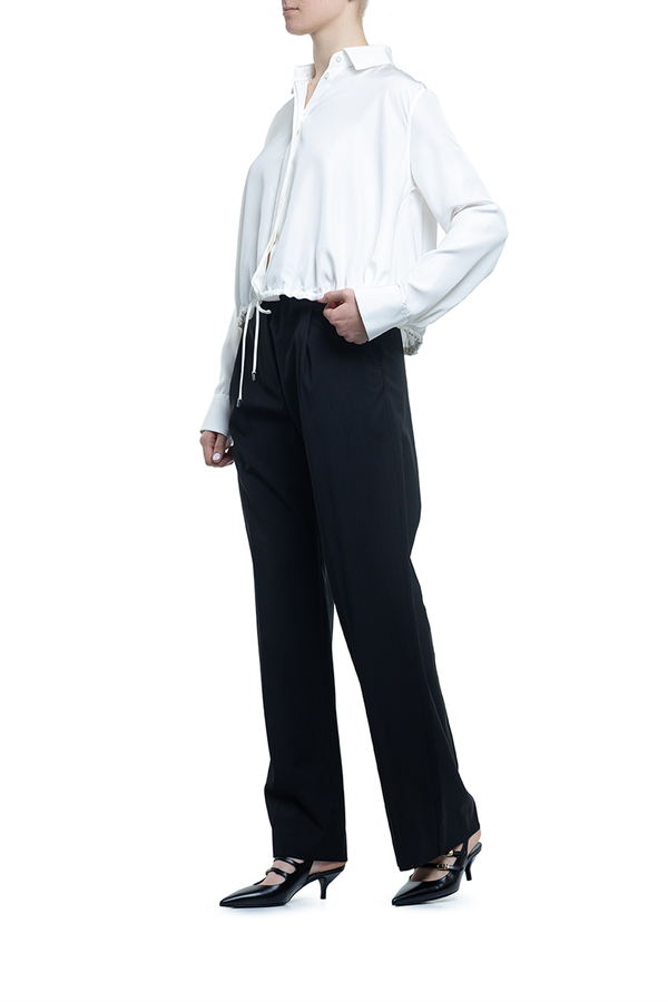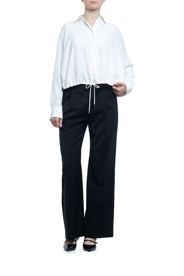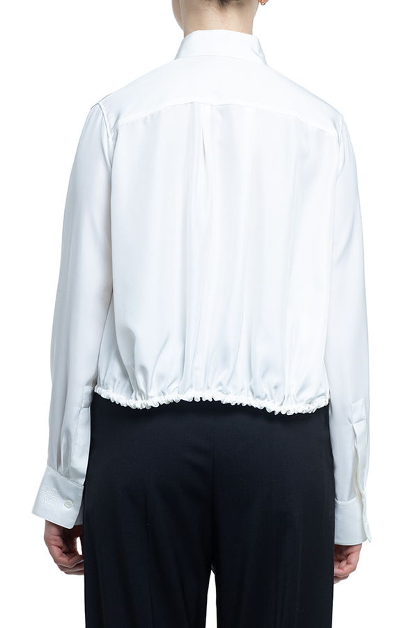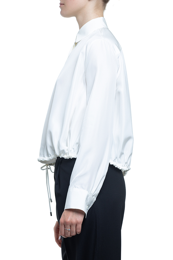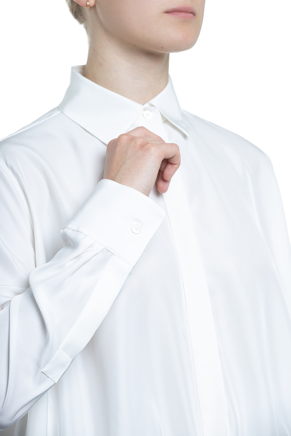 - Сорочка з довгими рукавами, класичний комір, застібка на гудзики, куліска на талії, на манжетах гудзики та вишивка монограми