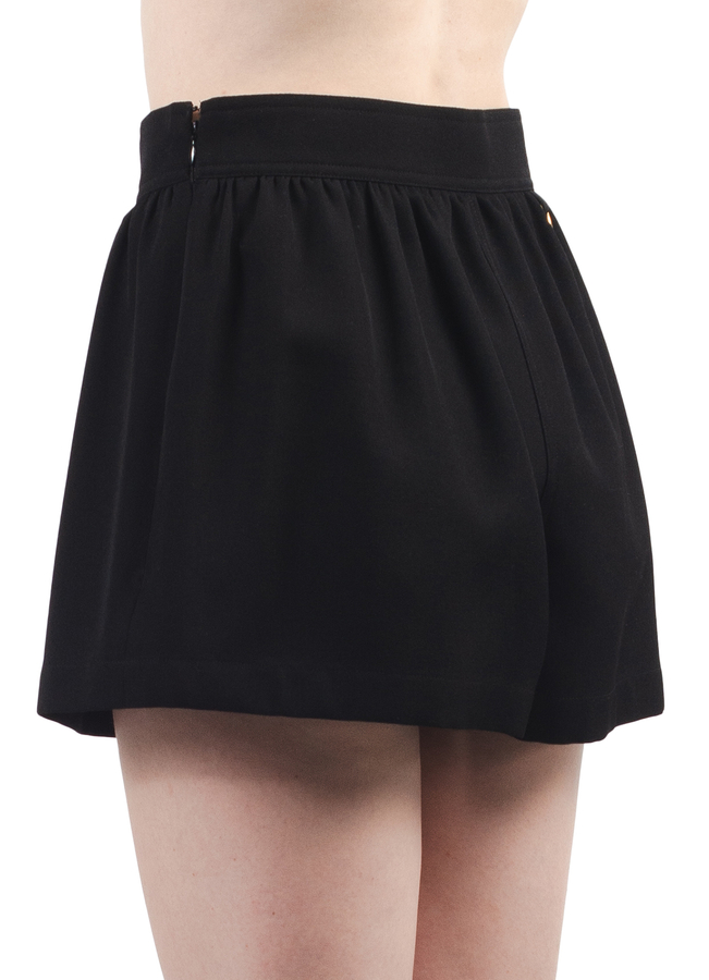 - Шорти з високою посадкою та широким поясом, прикрашені невеликими напівкільцями золотистого кольору
