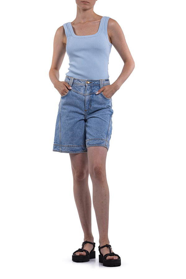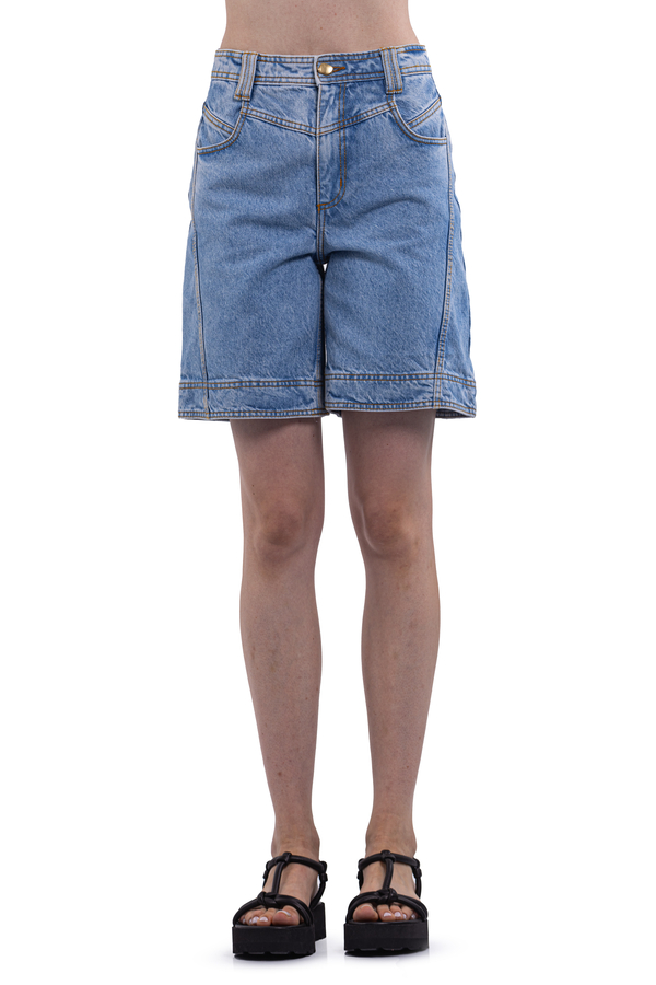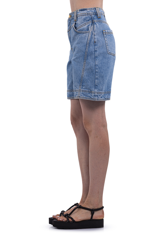 - Джинсові шорти, класичні 5 кишень, петлі для ременя, фірмова нашивка ззаду