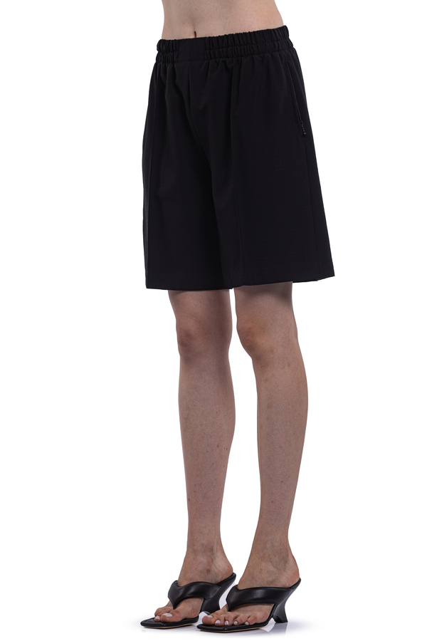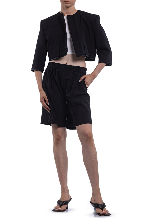 - Шорти костюмні, еластичний пояс, у бокових швах дві врізні кишені на блискавці