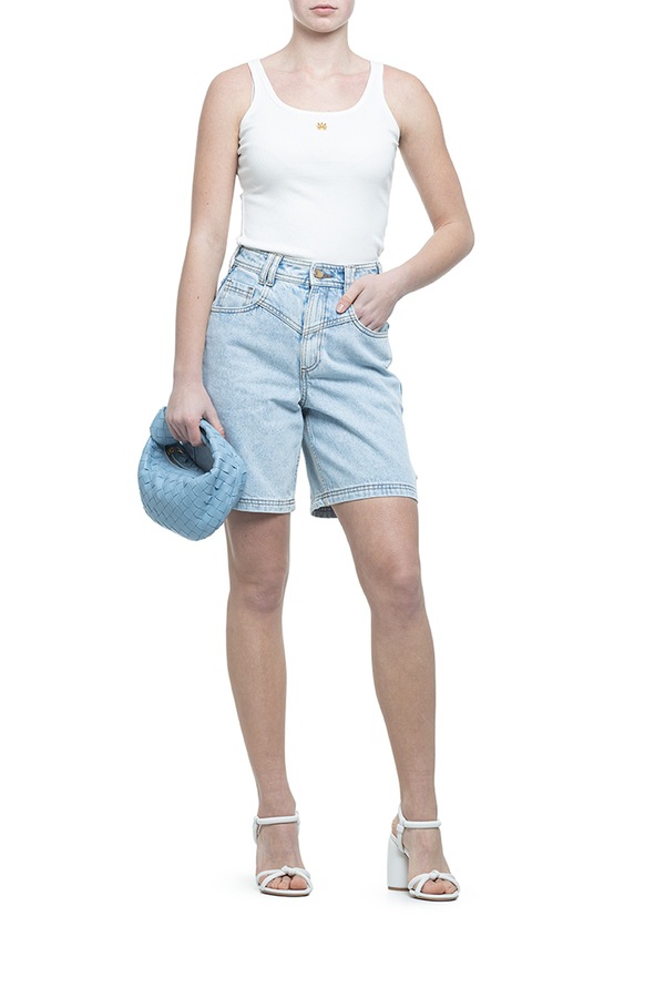 - Джинсові шорти з класичними п’ятьма кишенями, петлі для ременя, нашивка AJE на поясі ззаду, застібка на гудзик та блискавку