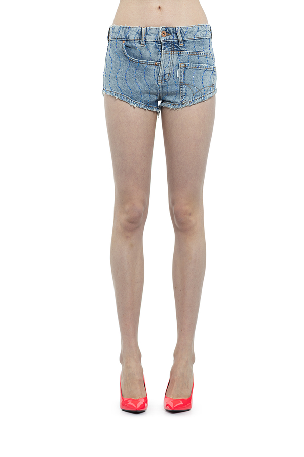 - Джинсові короткі шорти прикрашені блакитним камінням.