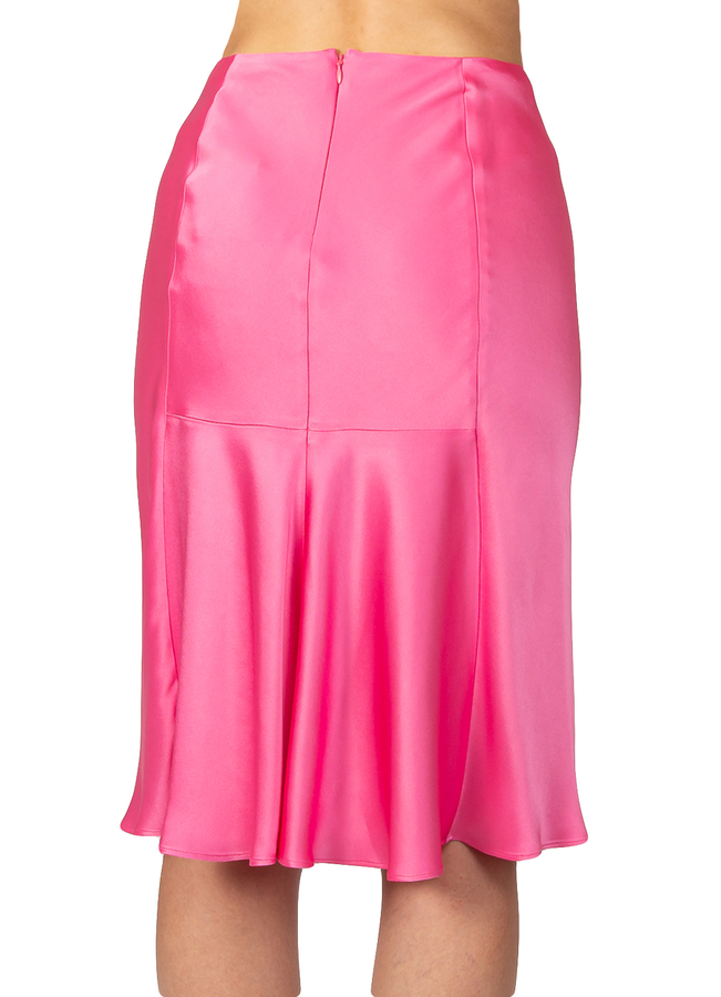 - Атласна спідниця середньої довжини, скошений зріз, прихована застібка-блискавка ззаду