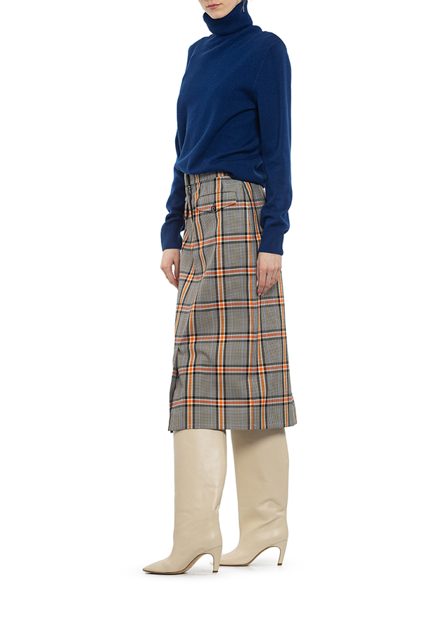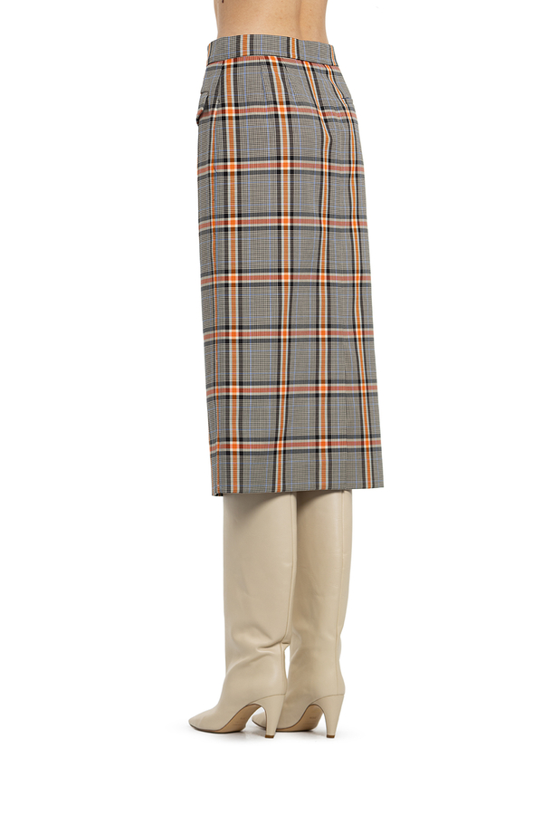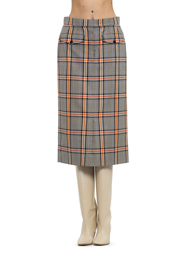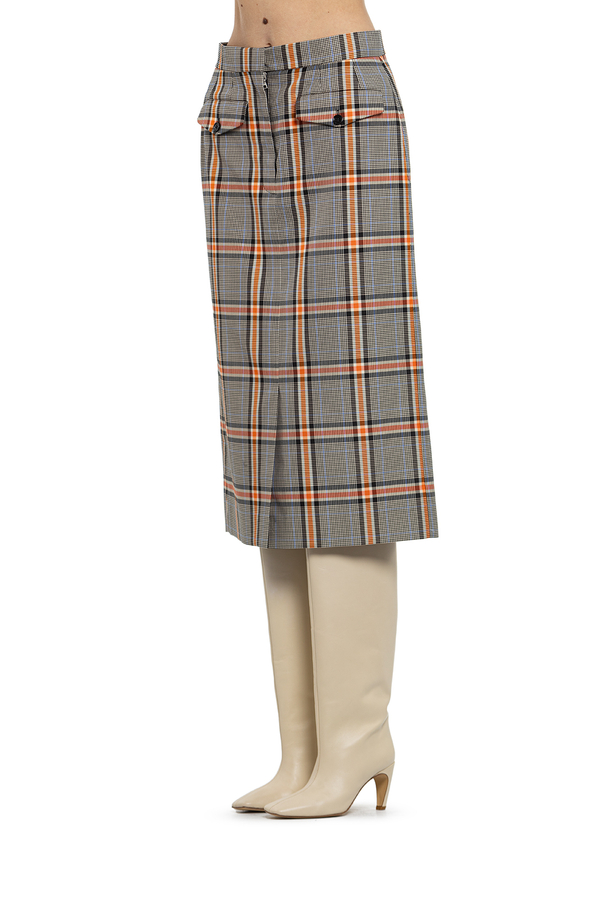 - Спідниця прямого силуету, довжиною до коліна. Візерунок в клітинку.