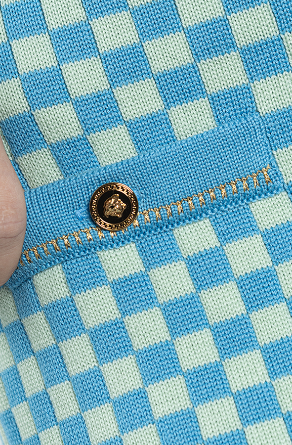 - В’язана міні-спідниця з візерунком у клітинку прикрашена гудзиками Медуза спереду.