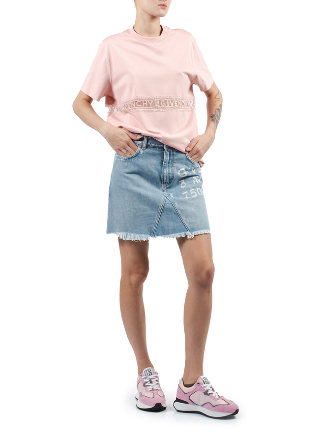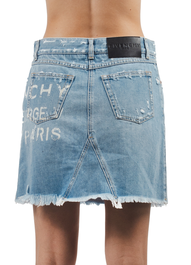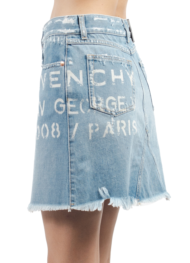 - Спідниця джинсова з фірмовим принтом логотипа, V деталь з обох сторін, застібка на закритій блискавці та фірмовій металевій кнопці.