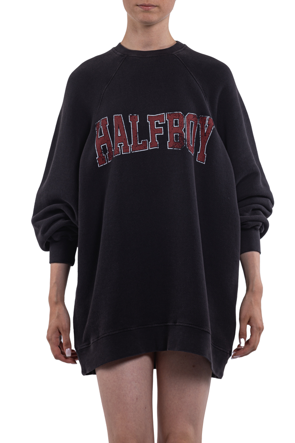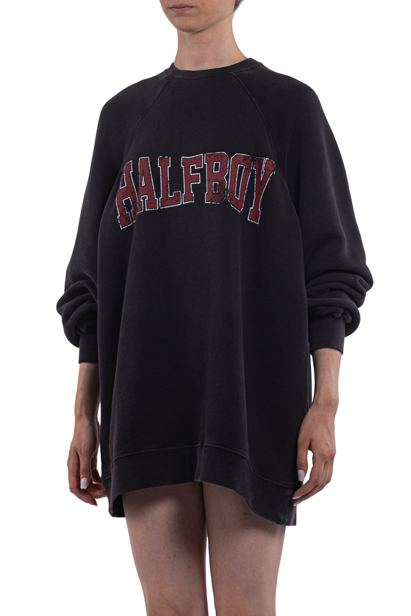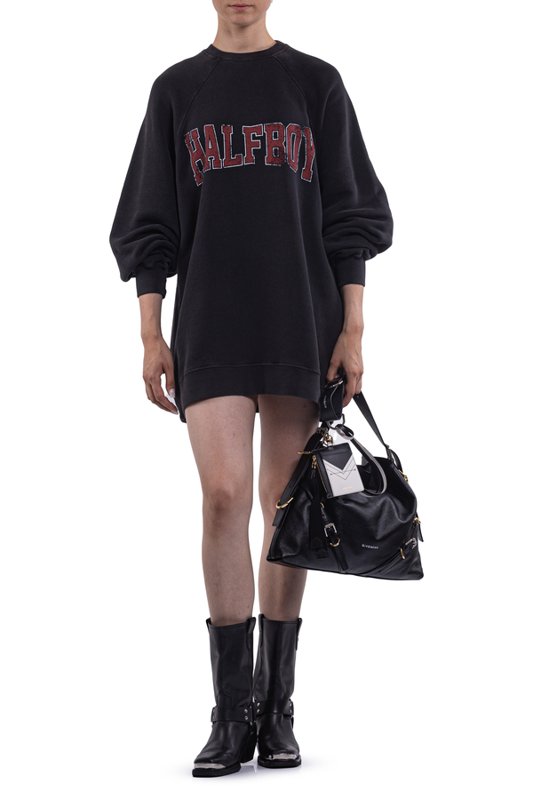 - Подовжений світшот, кругле горло, вільний крій, спереду напис із назвою бренда